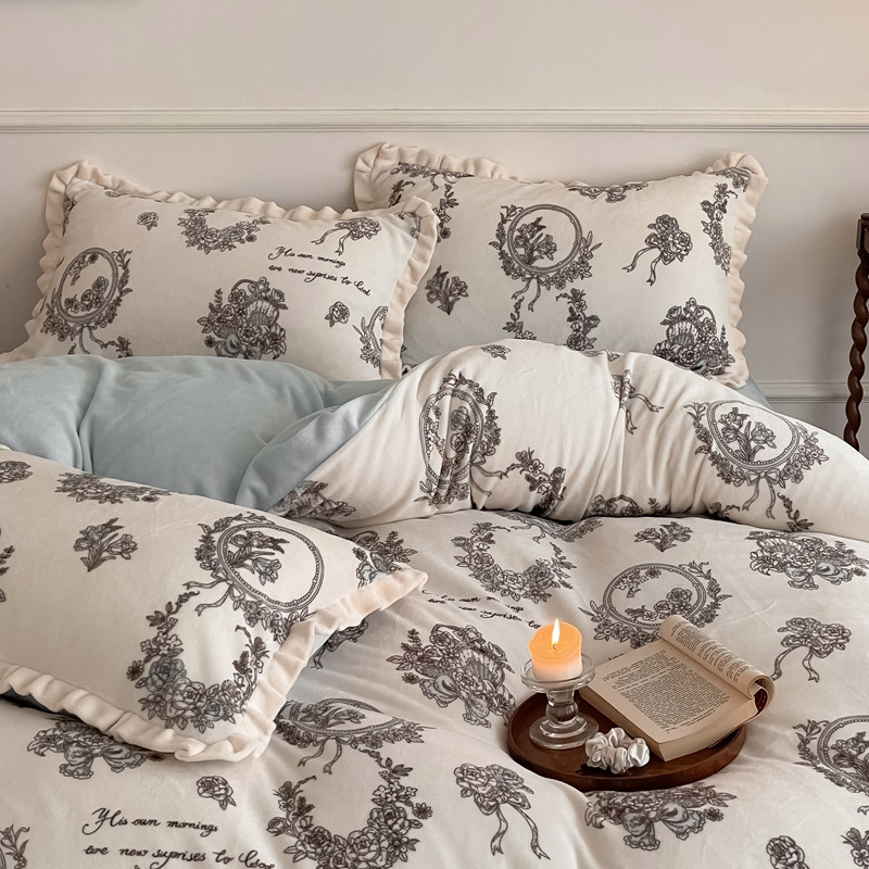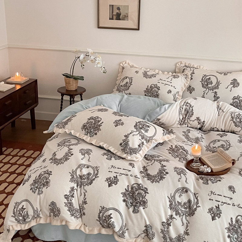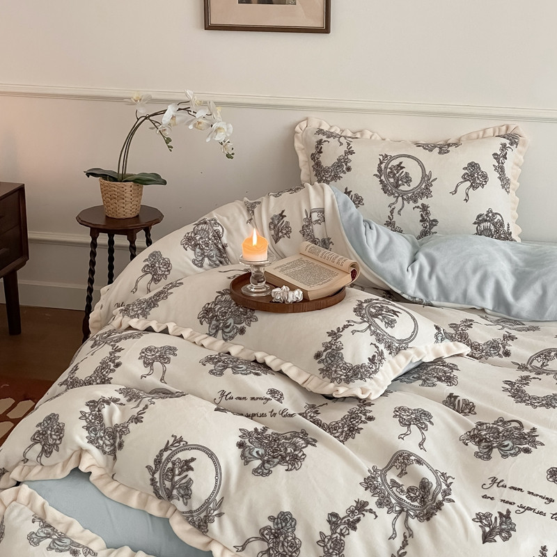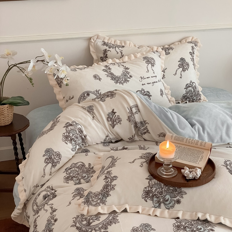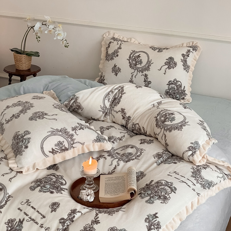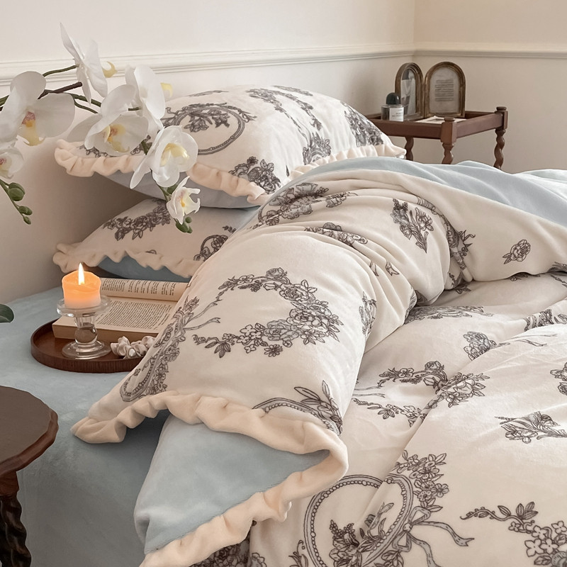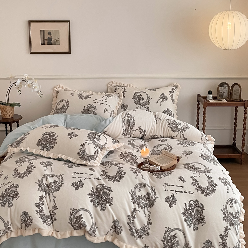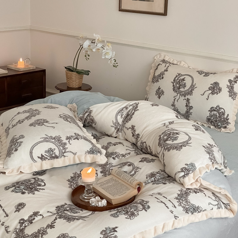 潘朵拉 2023新款美拉德风牛奶绒花边款四件套 伊人