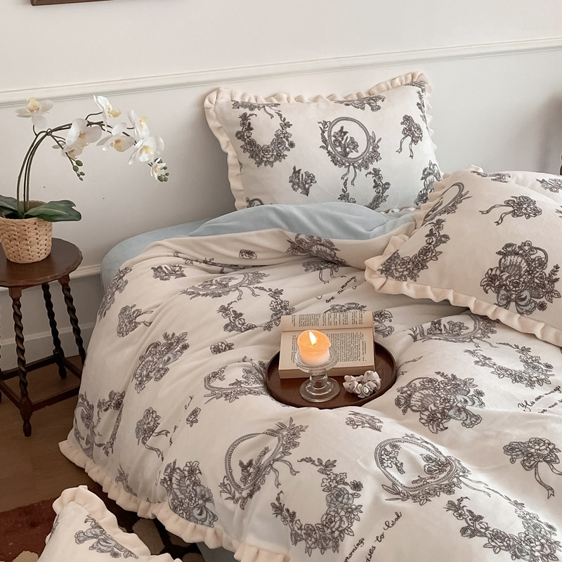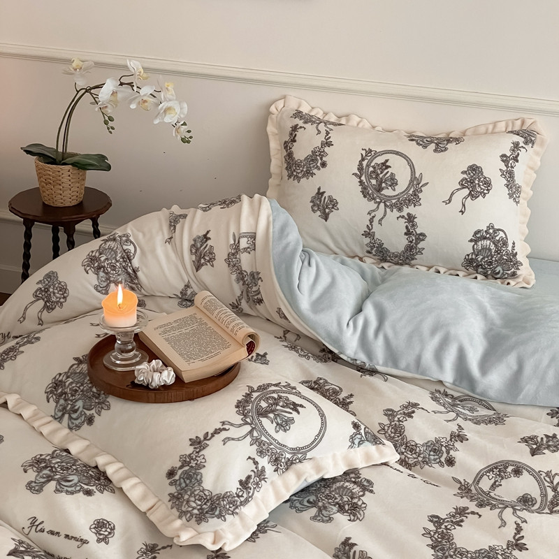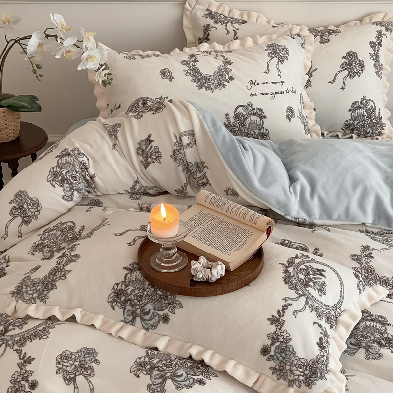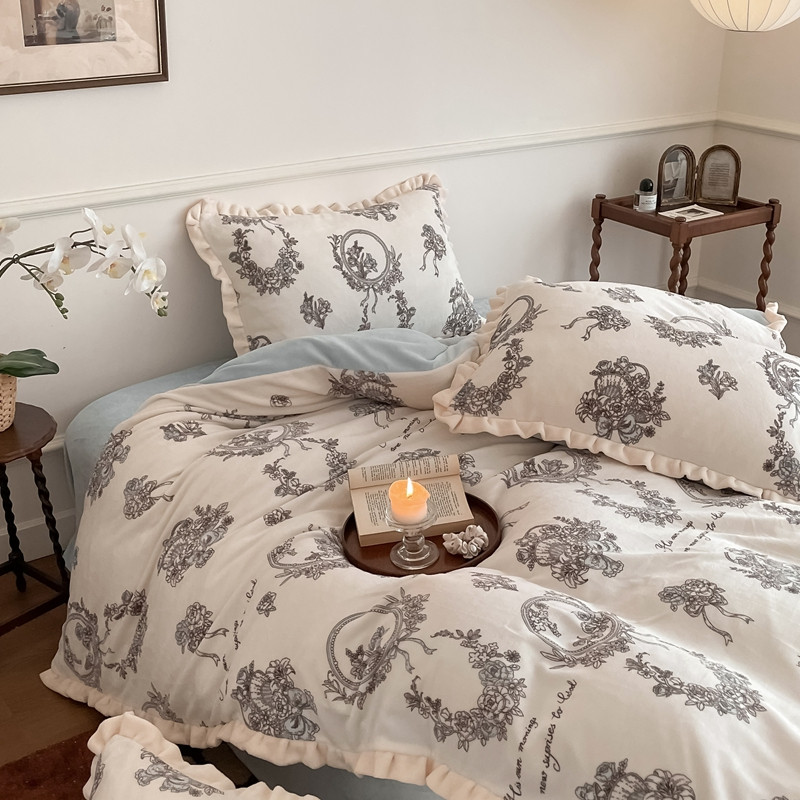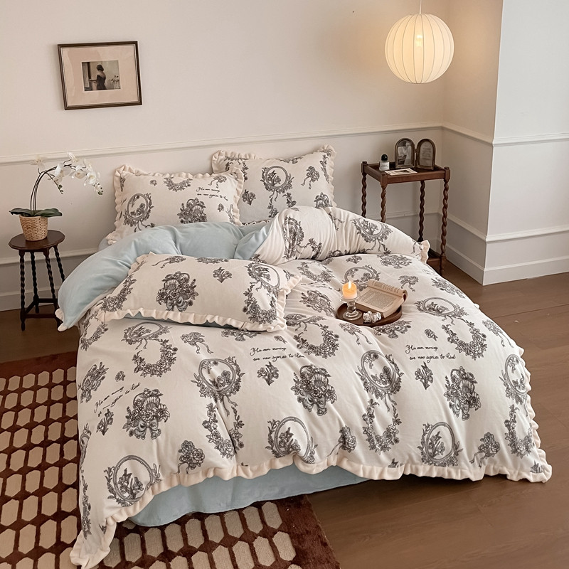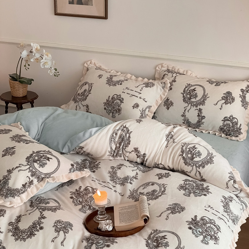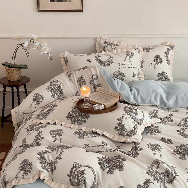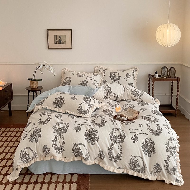 潘朵拉 2023新款美拉德风牛奶绒花边款四件套 伊人