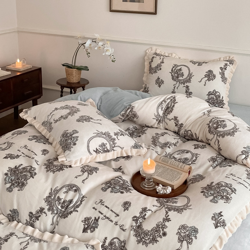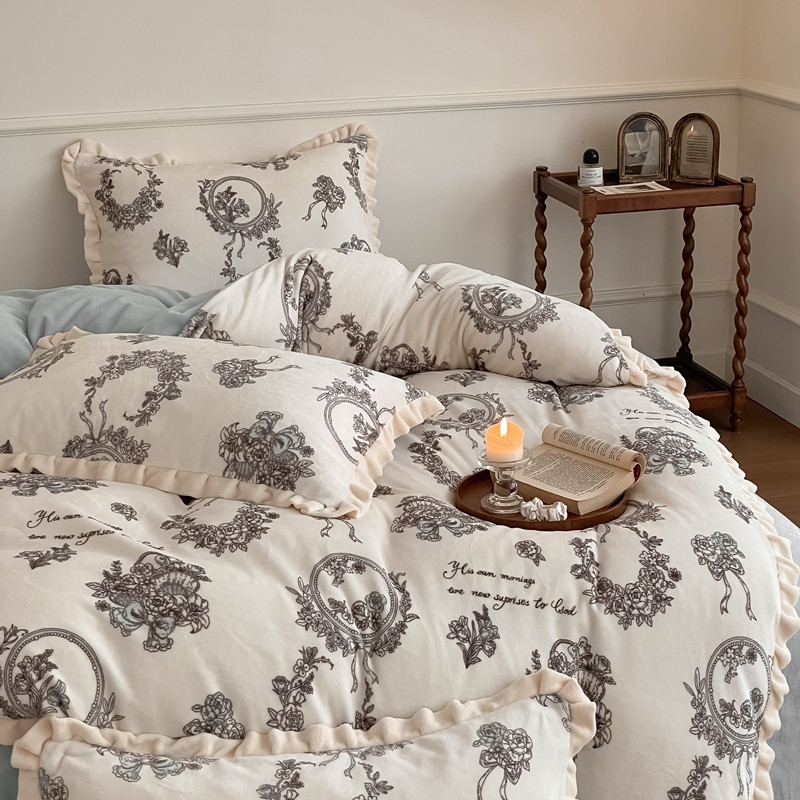 商品名称:潘朵拉 2023新款美拉德风牛奶绒花边款四件套 伊人