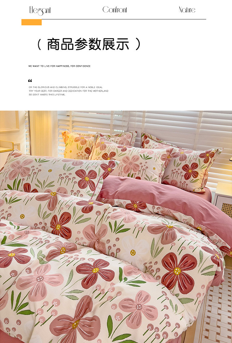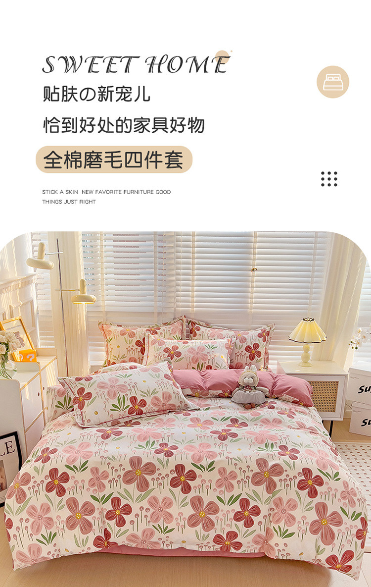 商品名称:暖芯优选 2025新款小清新印花全棉磨毛四件套 爱意花间