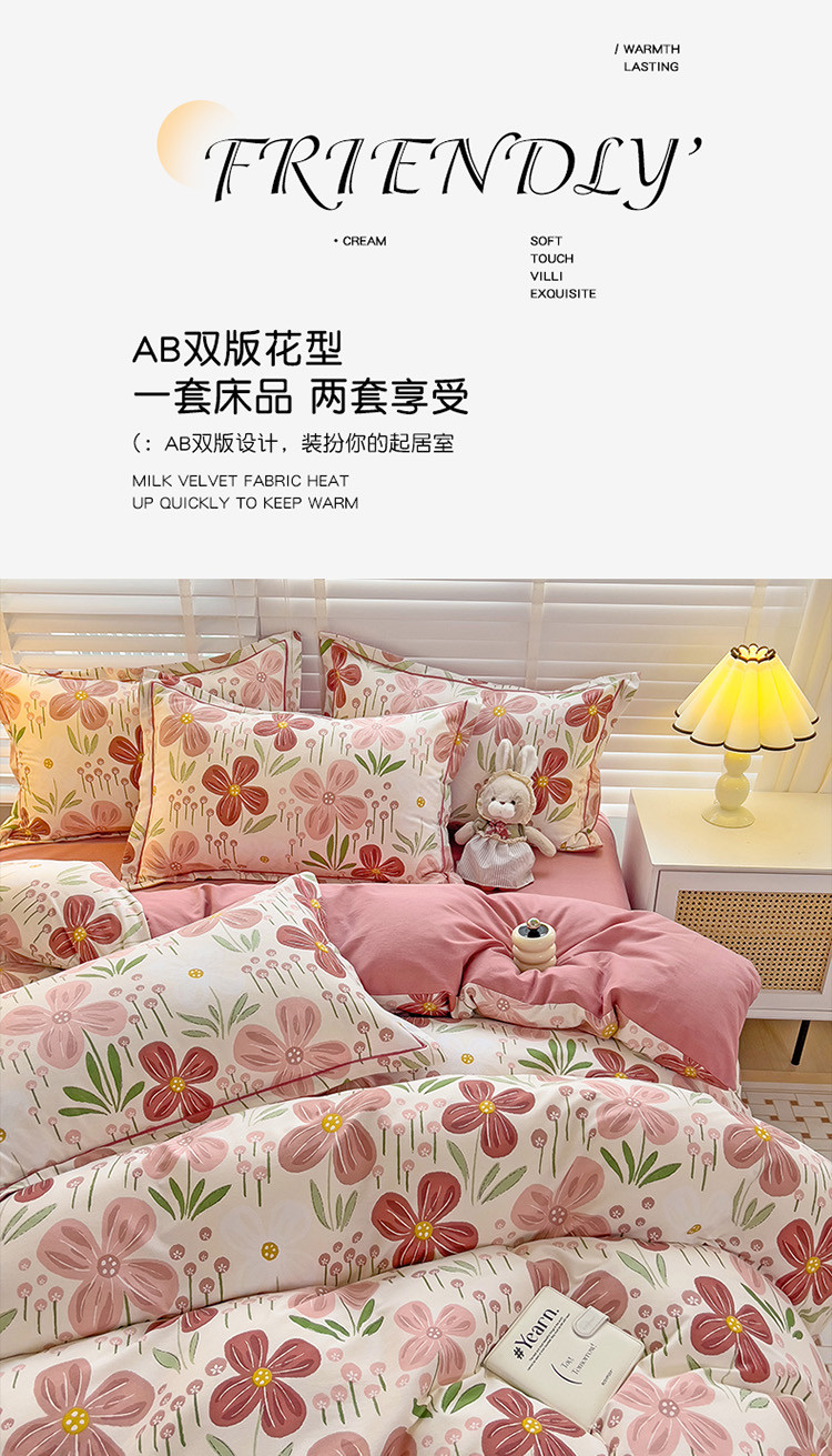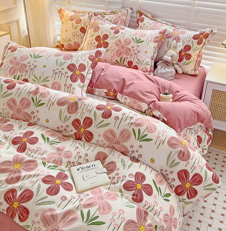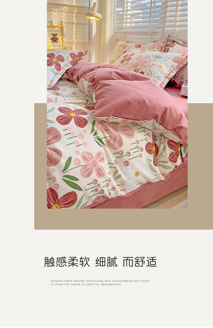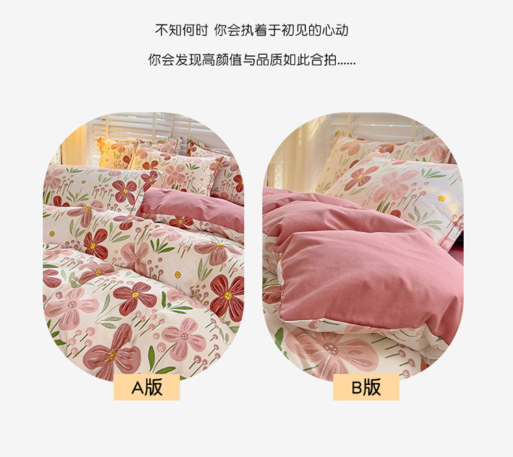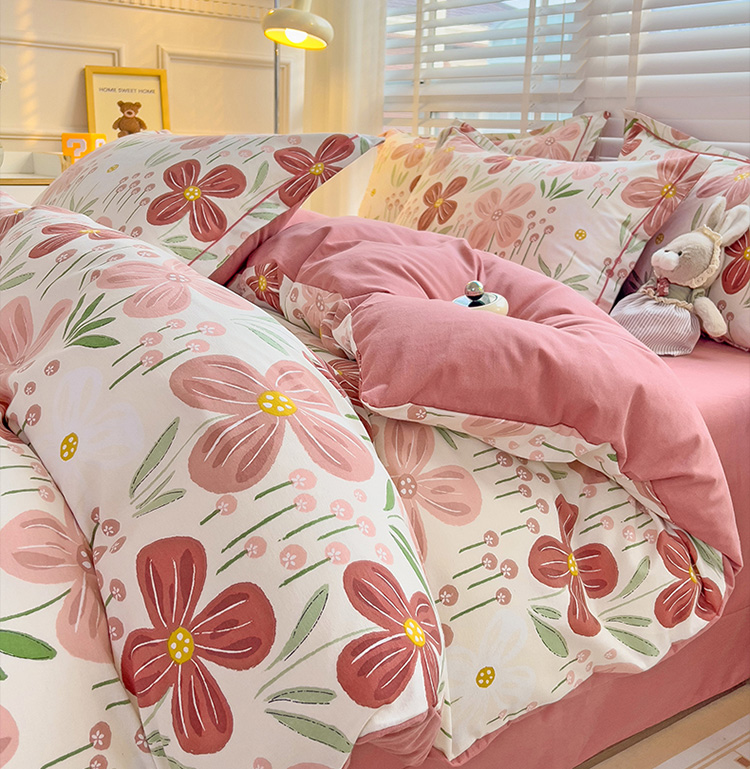 暖芯优选 2025新款小清新印花全棉磨毛四件套 爱意花间