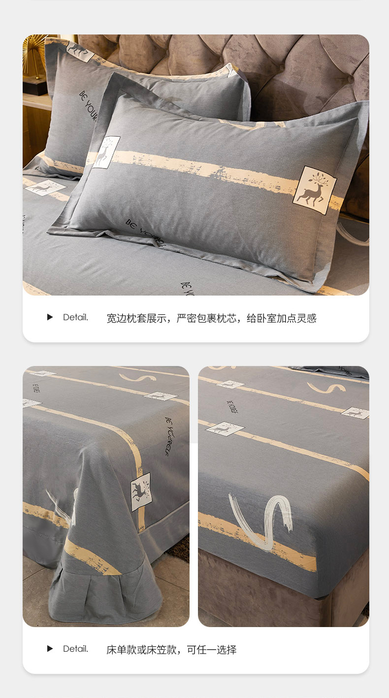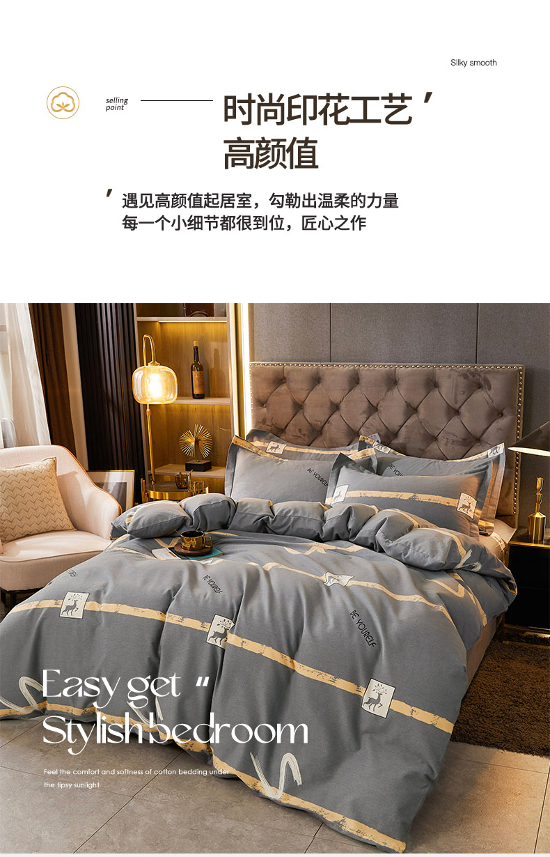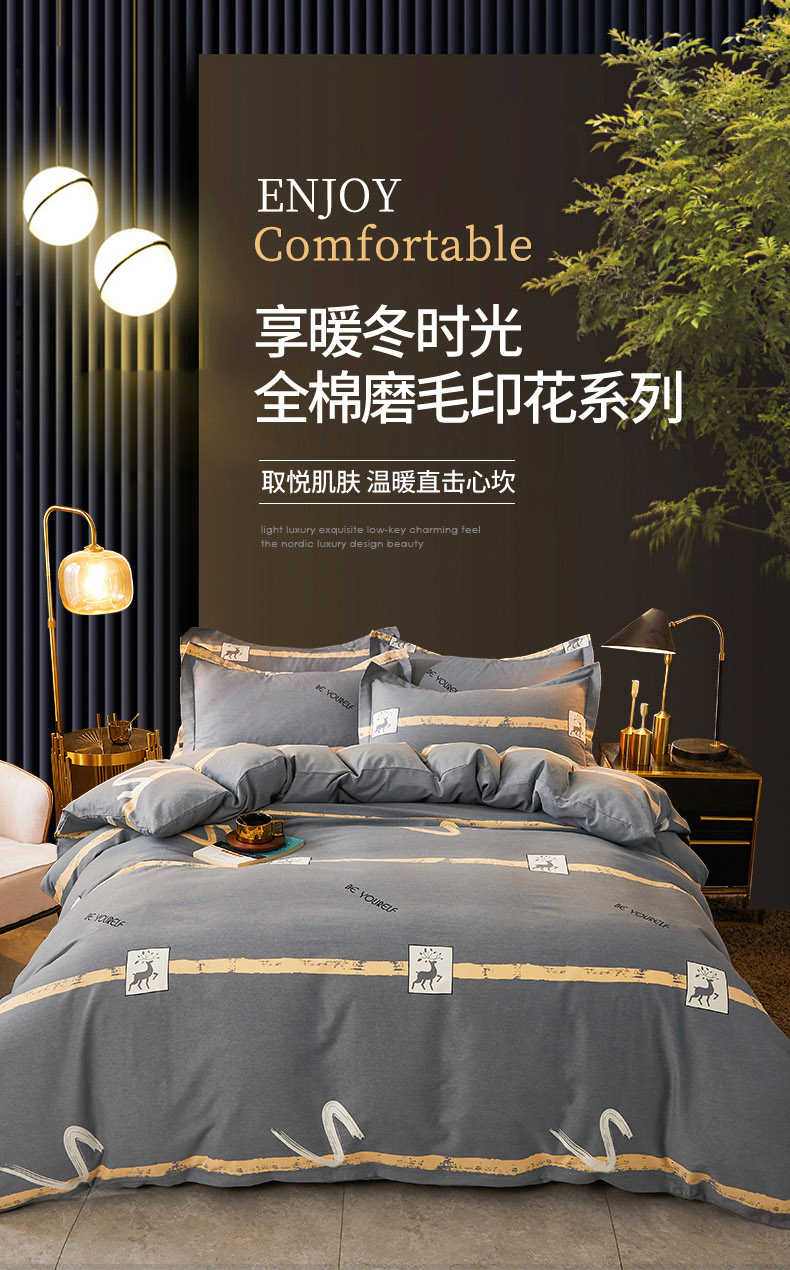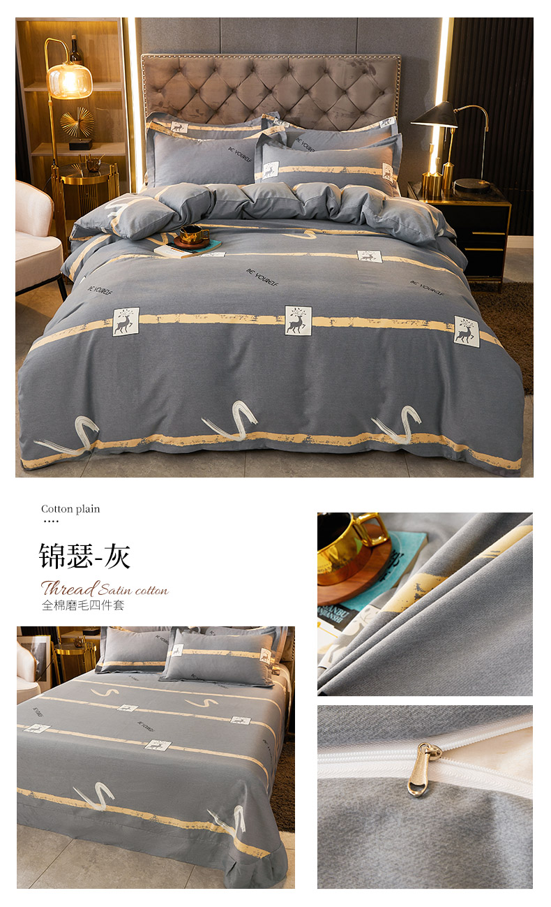 当前位置: 91家纺网 > 商品网购 > 床品套件 > 四件套 > 普通磨毛四件套 > 伊而梦 2023新款全棉磨毛印花四件套系列四件套 锦瑟-灰