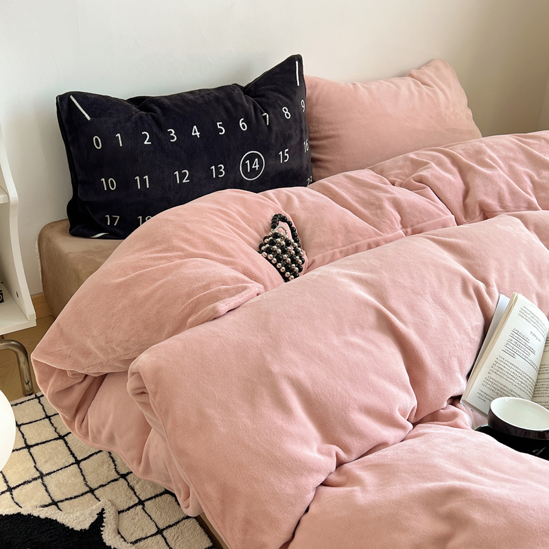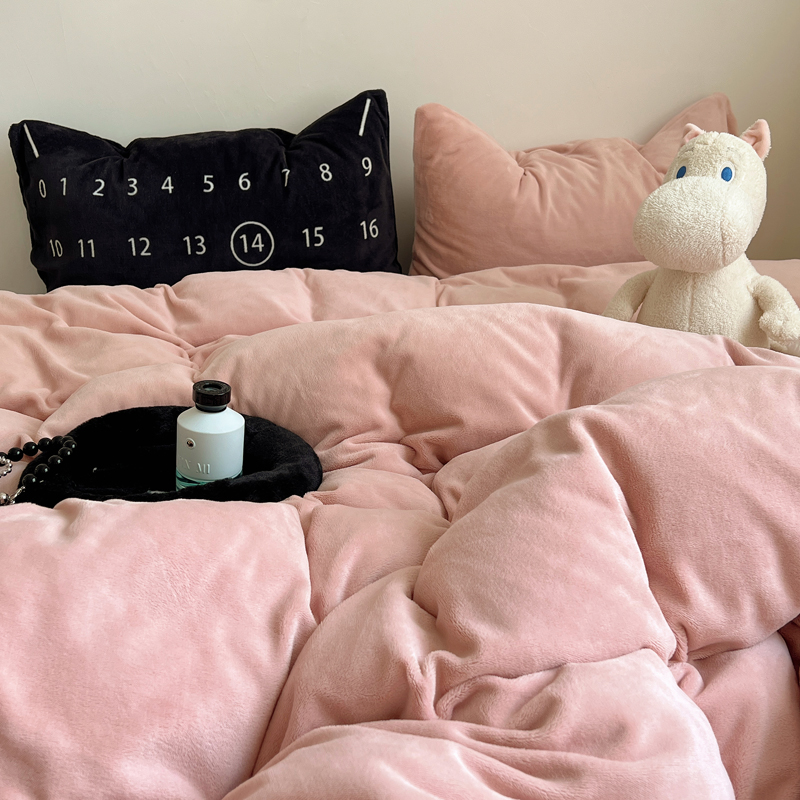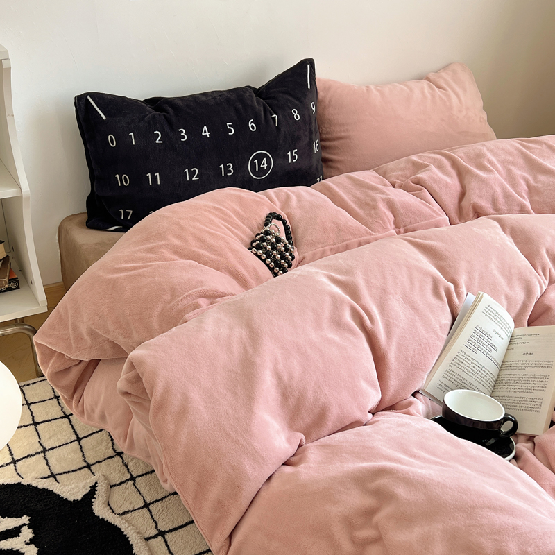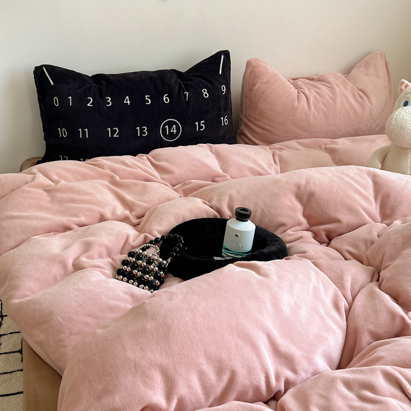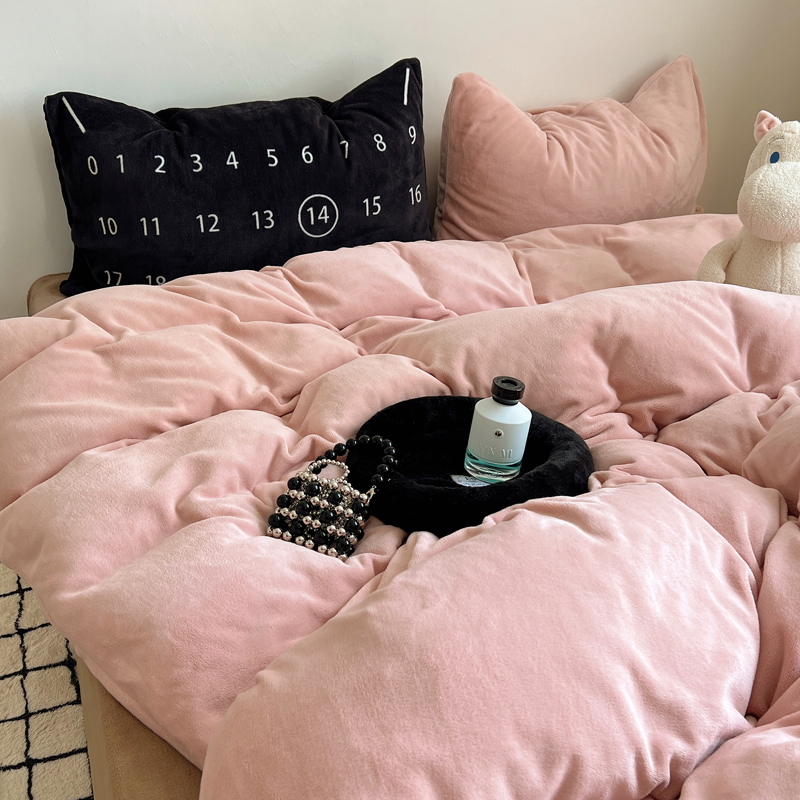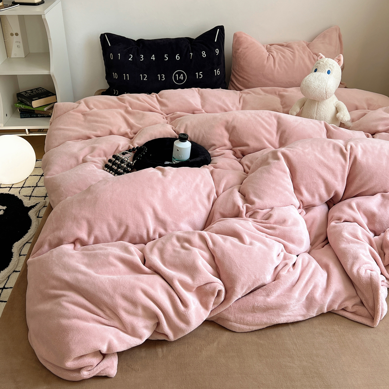 桃喜 2024新款牛奶绒纯色混搭系列四件套 草莓拿铁