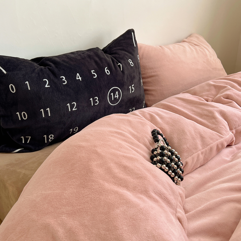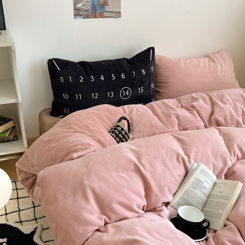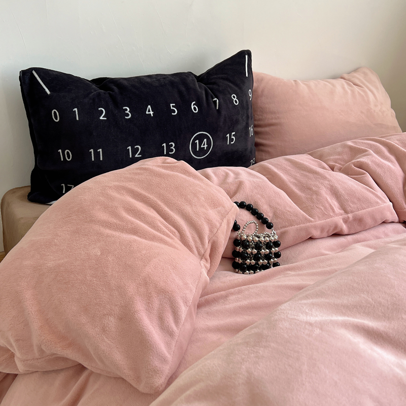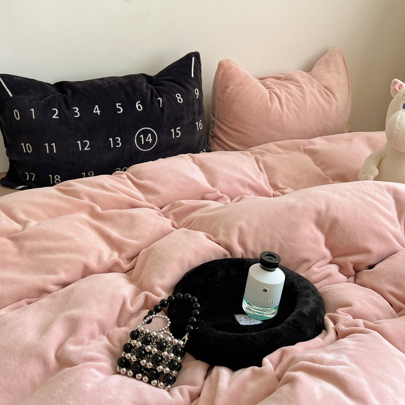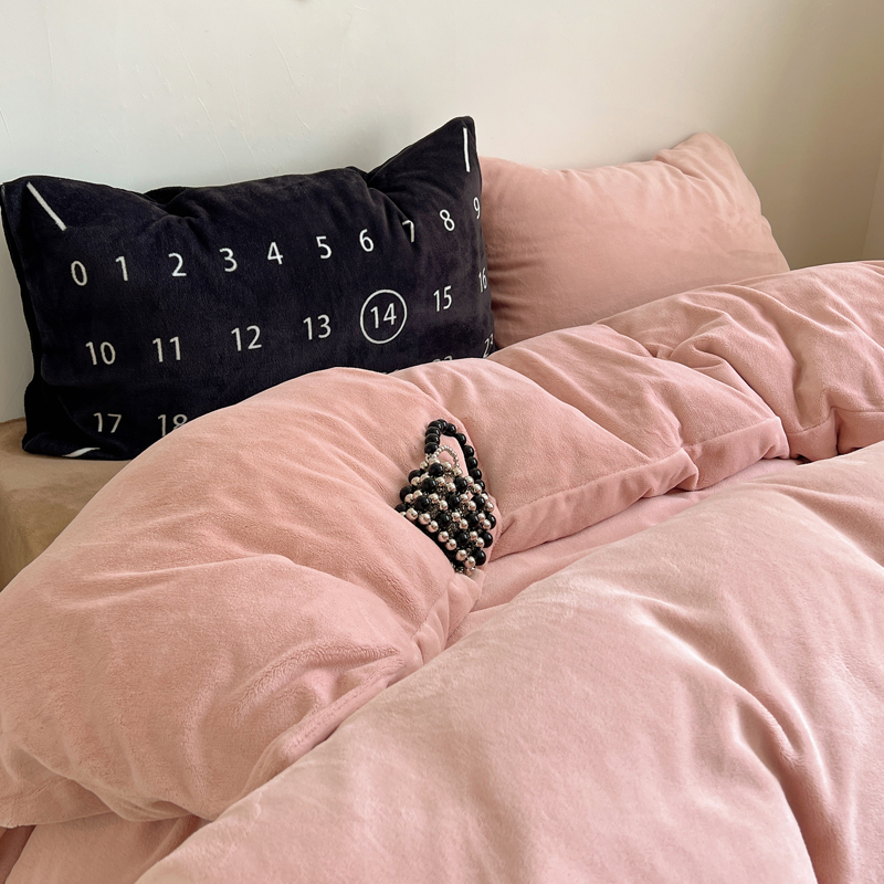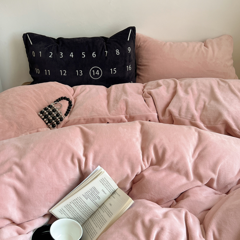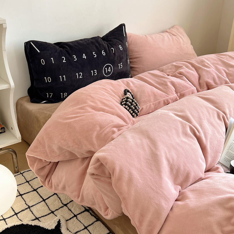 桃喜 2024新款牛奶绒纯色混搭系列四件套 草莓拿铁