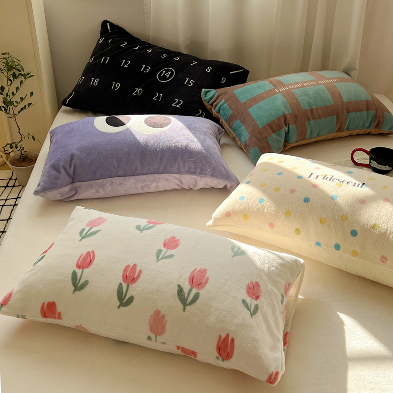 商品名称:桃喜 2024新款牛奶绒纯色混搭系列单枕套 黑眼豆豆紫