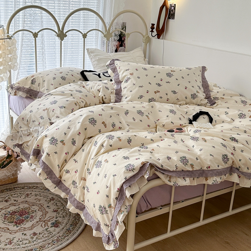 (总)昔可家纺 2023新款全棉小花系列四件套,柏林少女,小小的樱桃,紫色葡萄