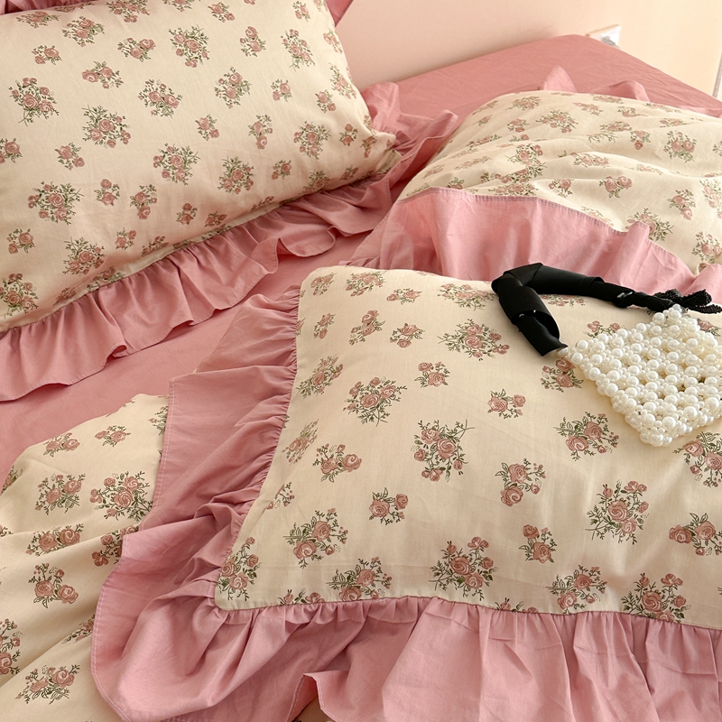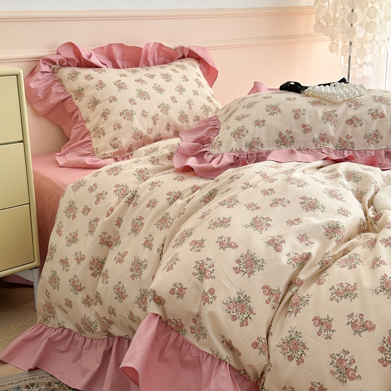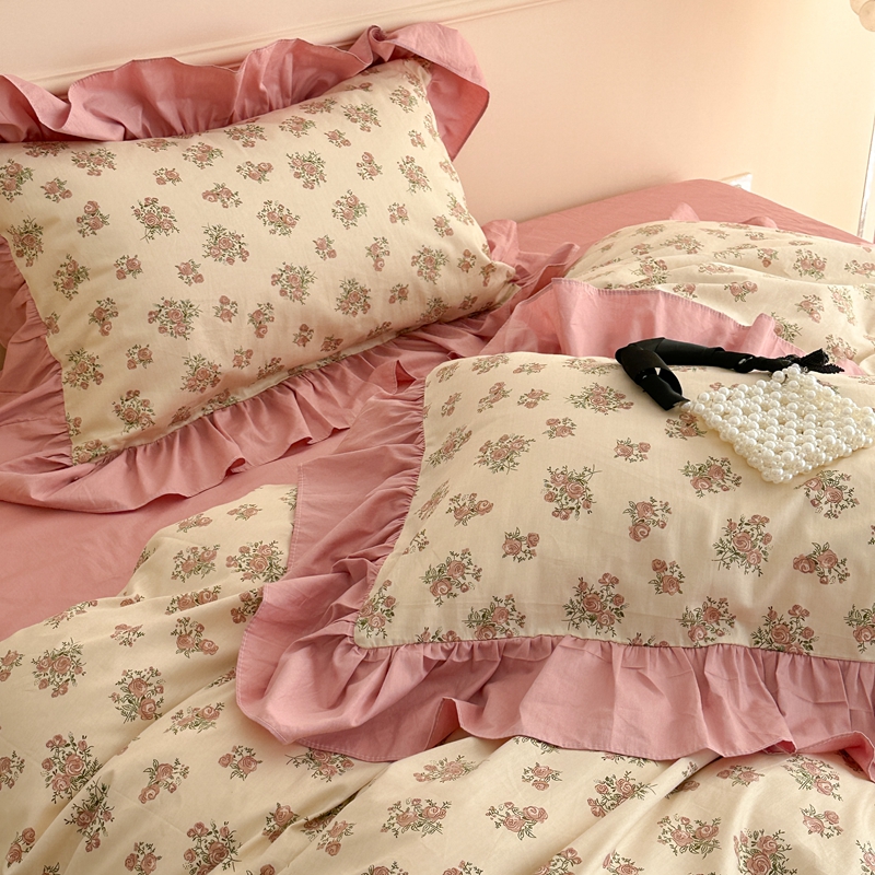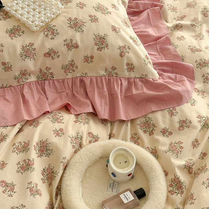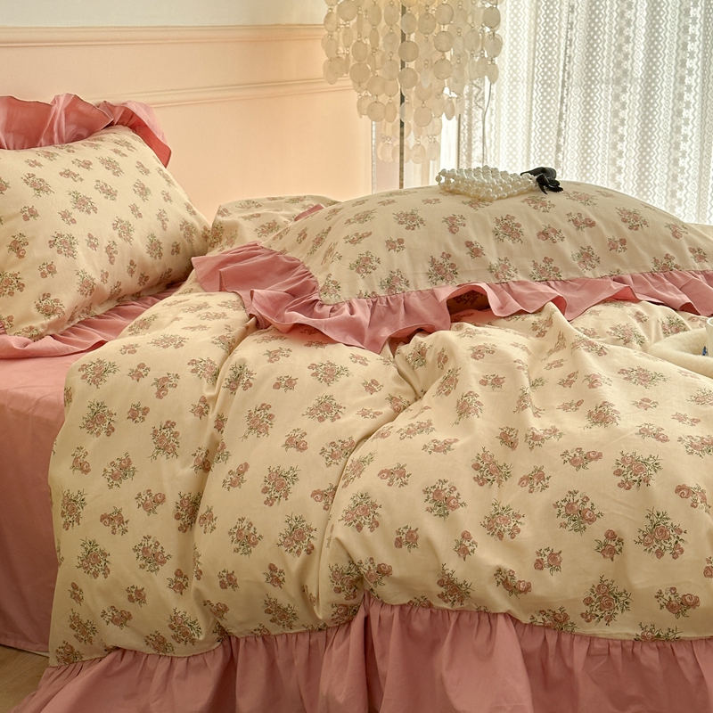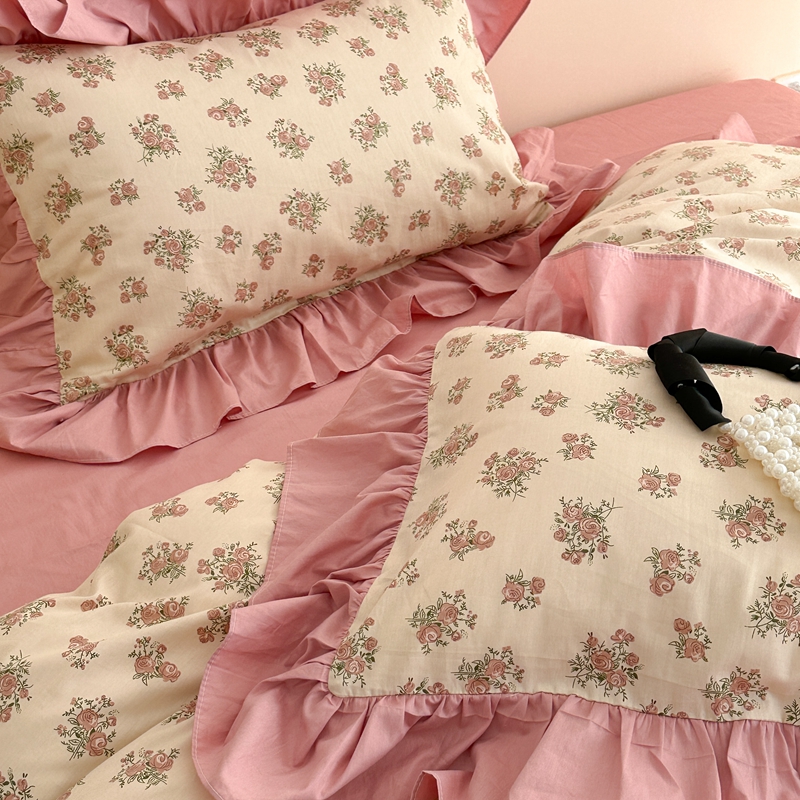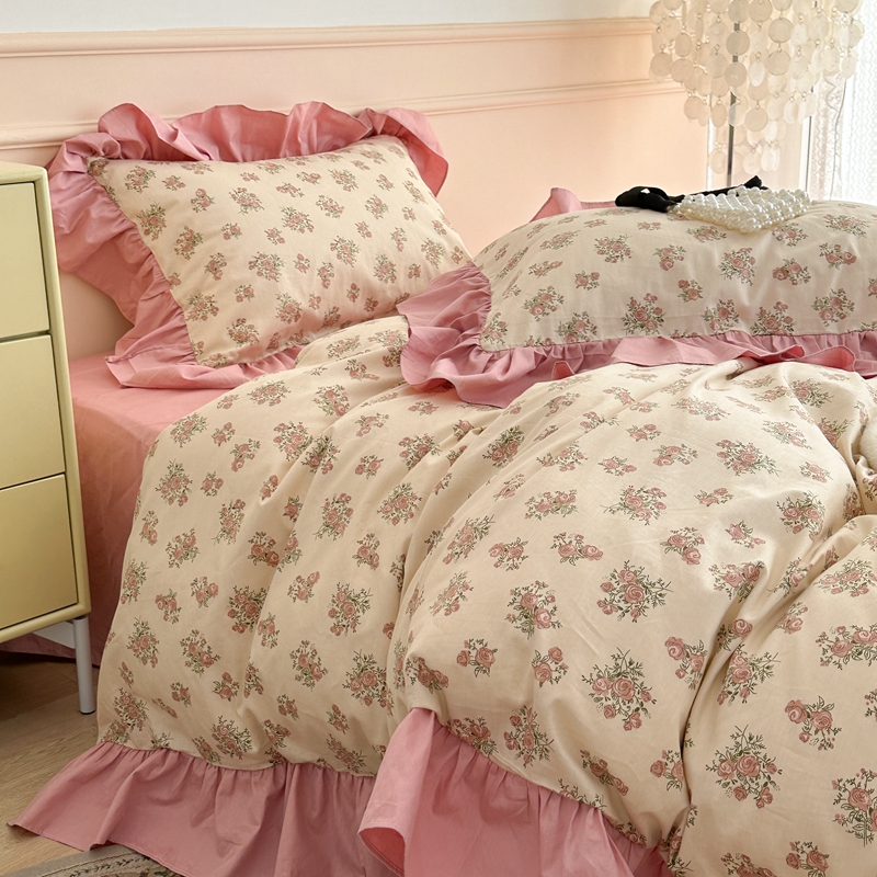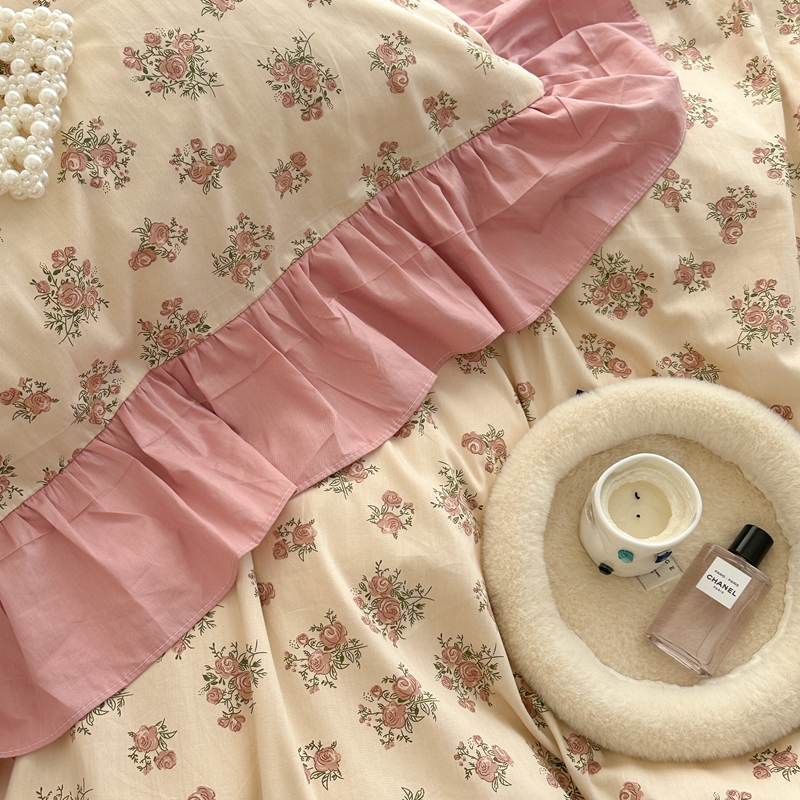 昔可家纺 2023新款韩式大花边全棉四件套 蔷薇缇露
