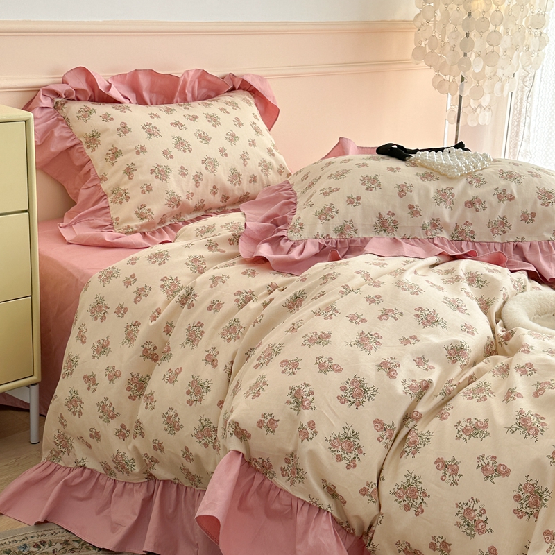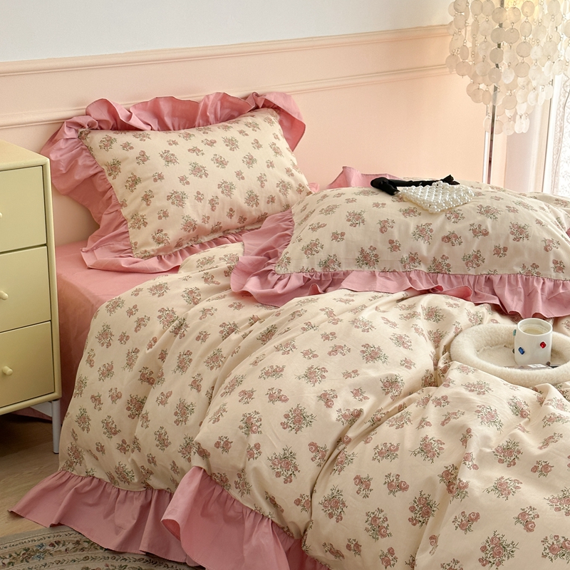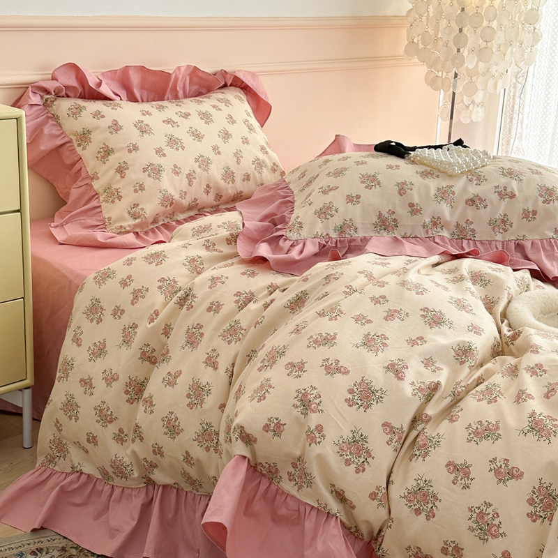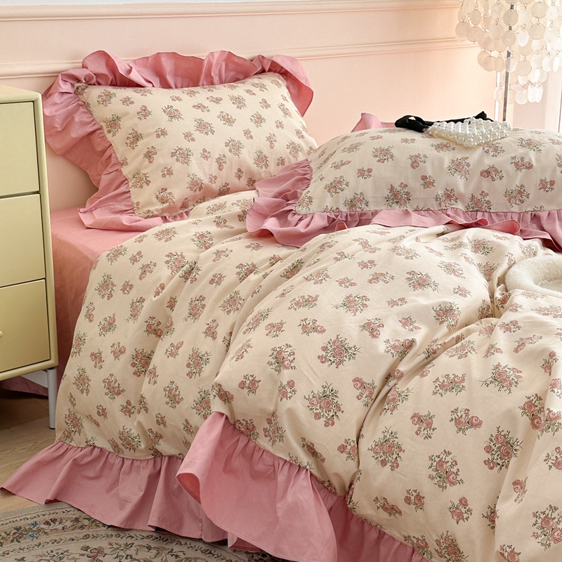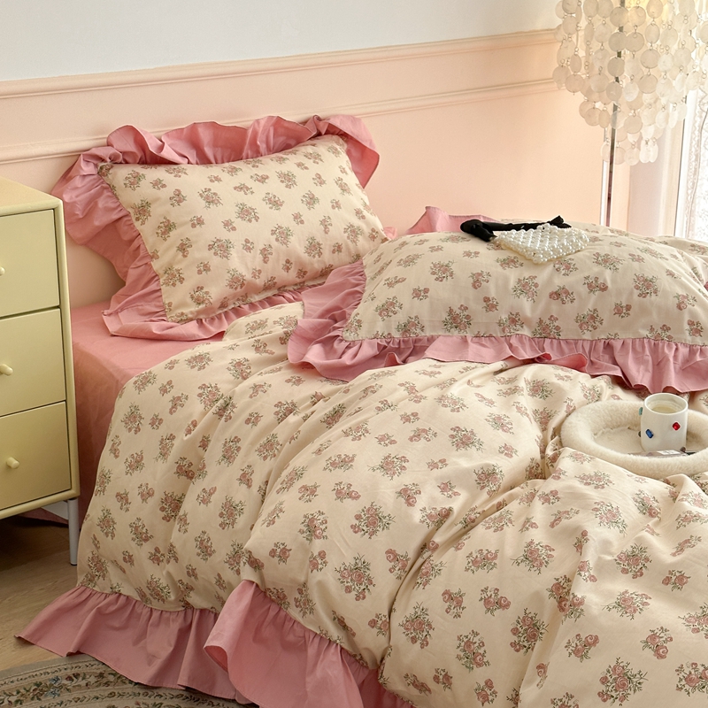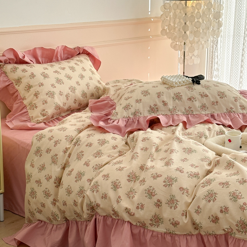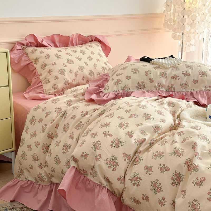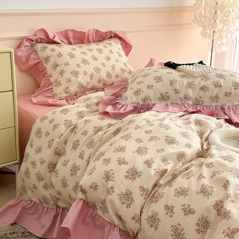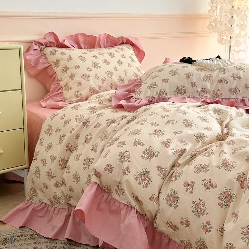 昔可家纺 2023新款韩式大花边全棉四件套 蔷薇缇露