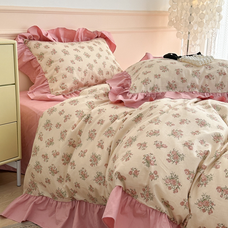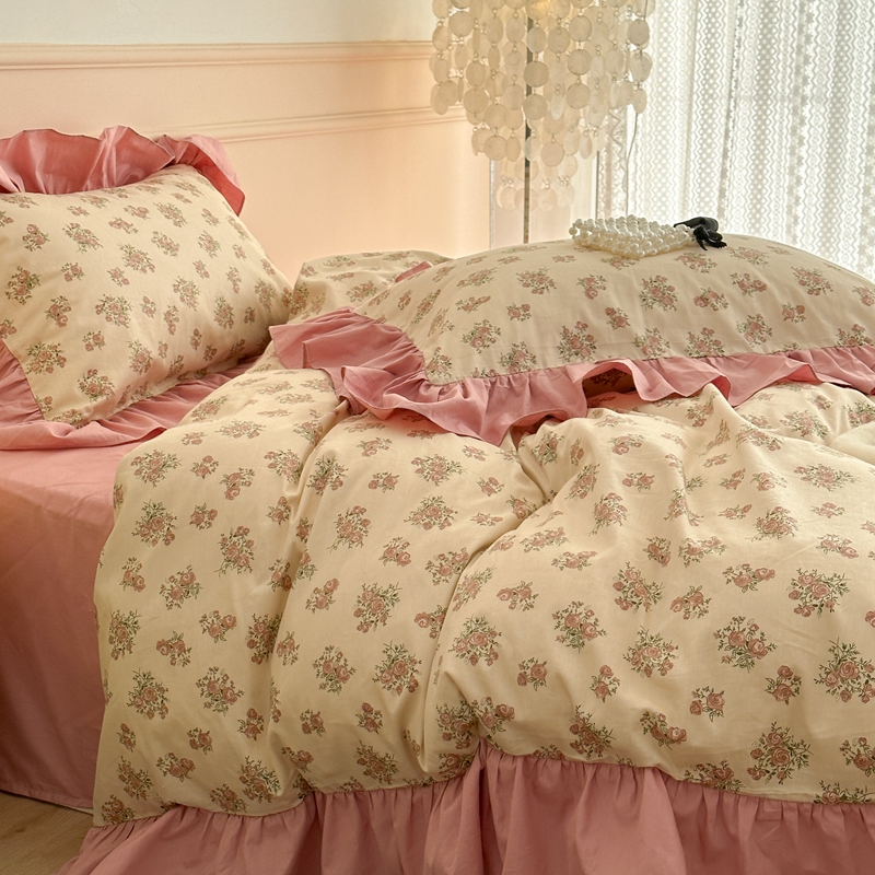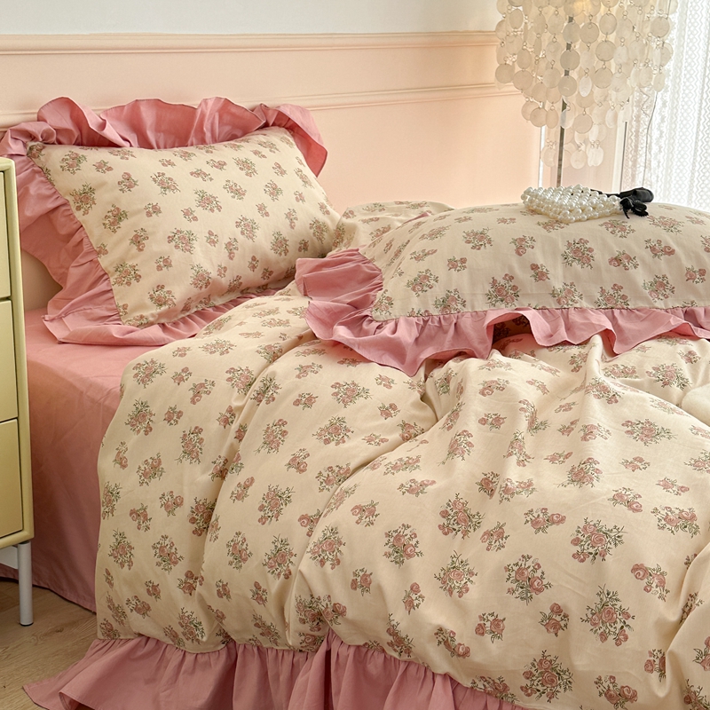 商品名称:昔可家纺 2023新款韩式大花边全棉四件套 蔷薇缇露