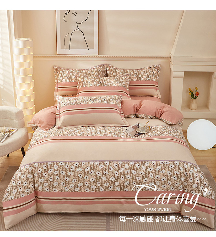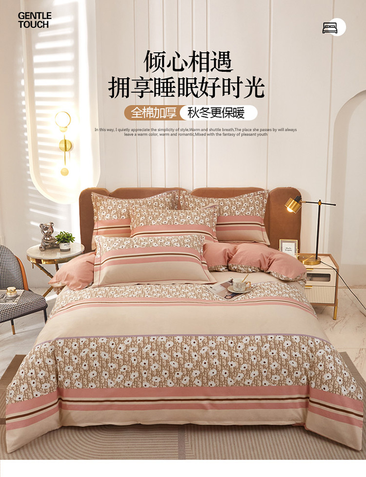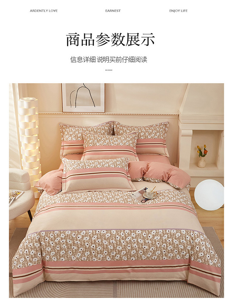 商品名称:雲归梦 2023新款全棉AB版加厚四件套北国之春粉