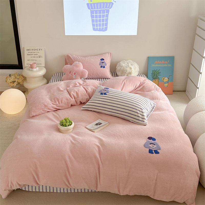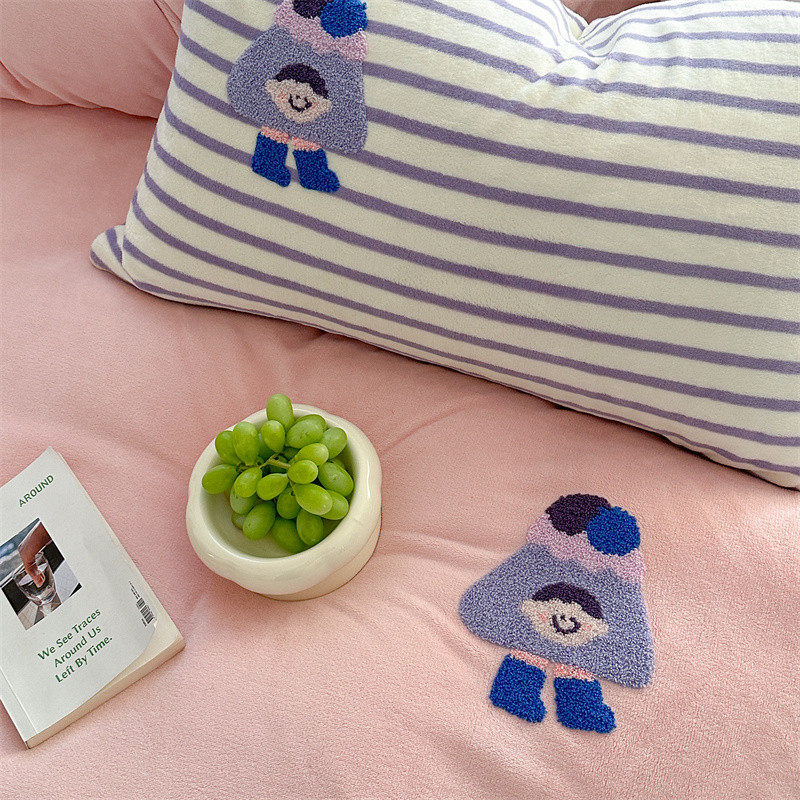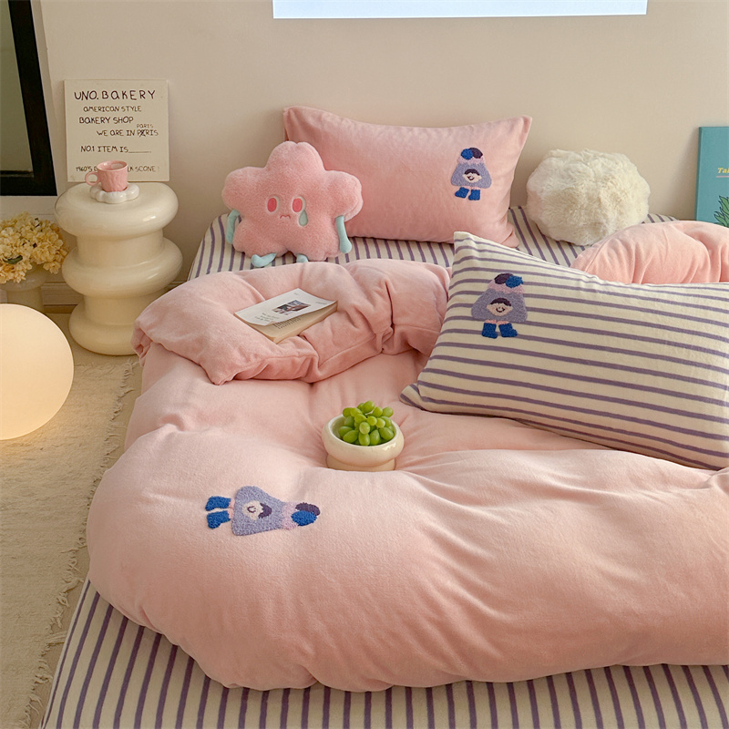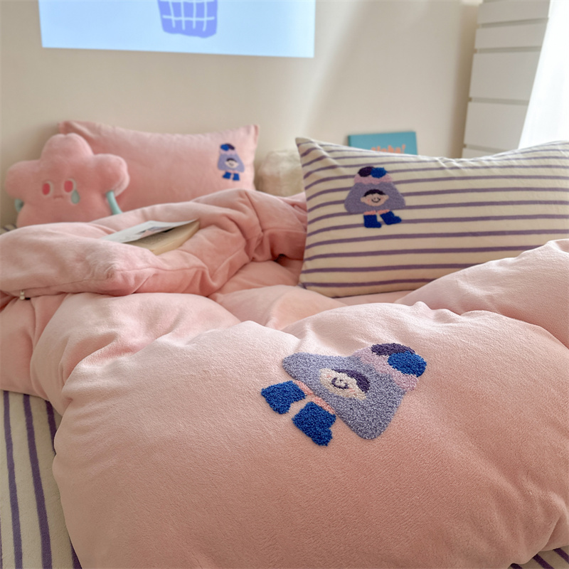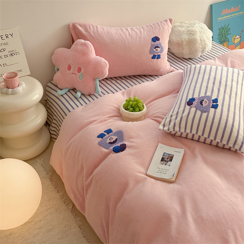 (总)柚子YOUTH 2025新款加厚牛奶绒卡通毛巾绣四件套-印加绣送同款毛毯,蛋糕小狗,公主猫,头套猫,兔兔花园,小伙伴,雪纳瑞