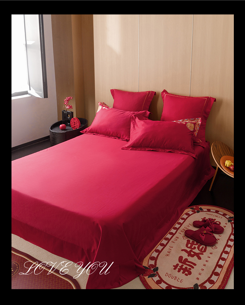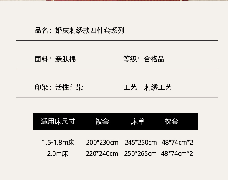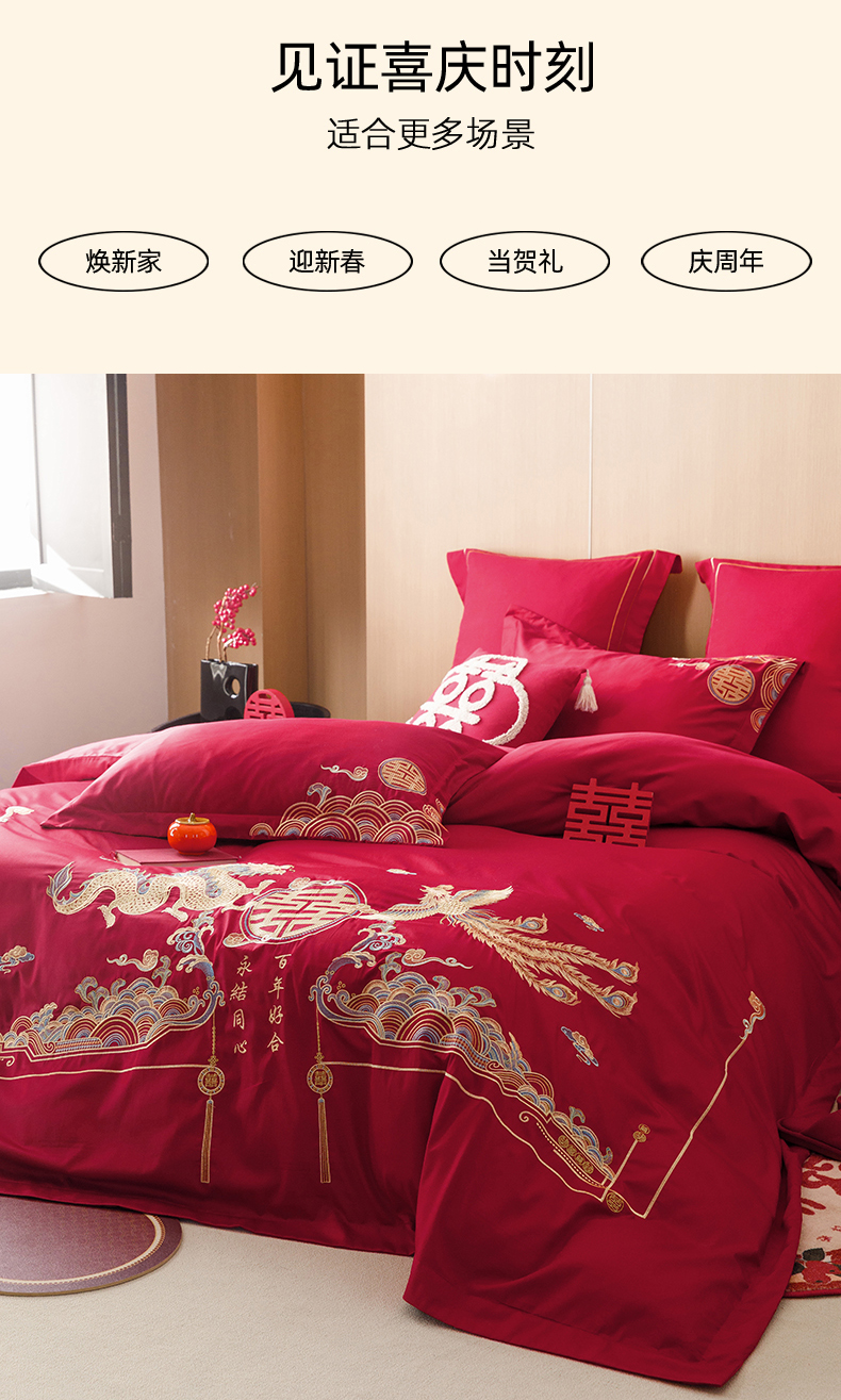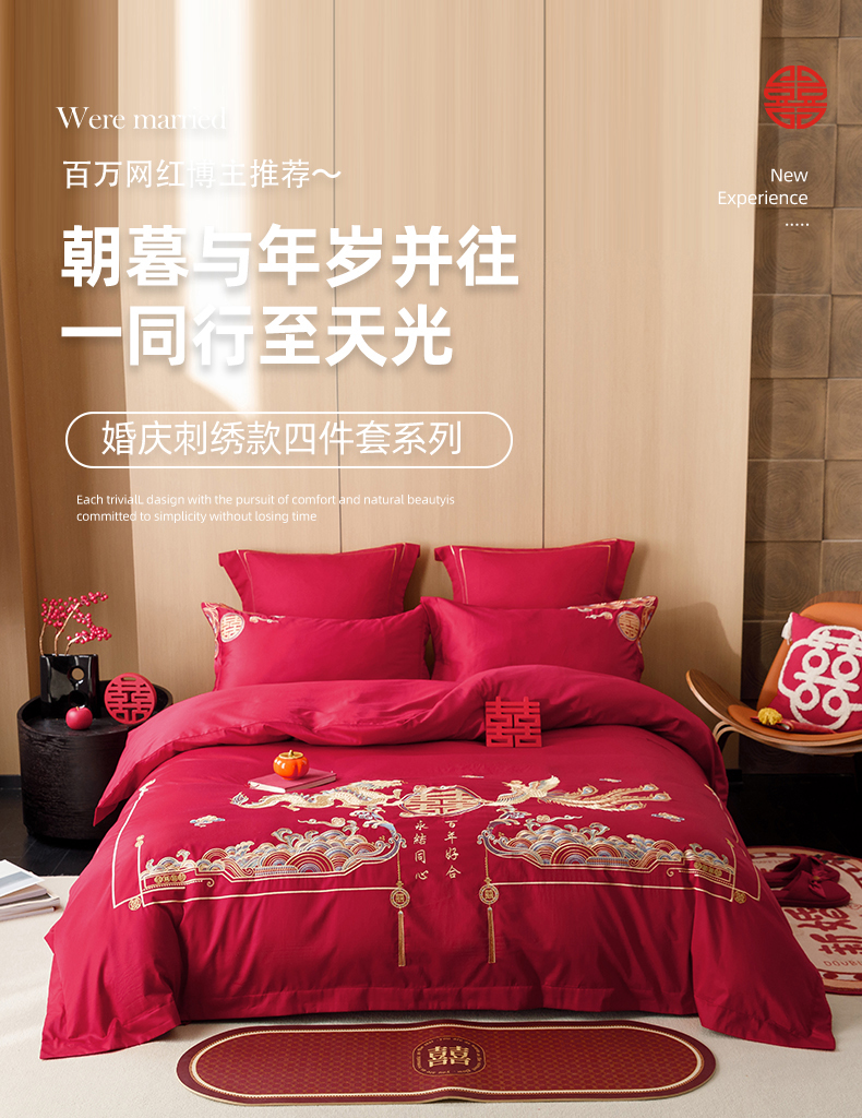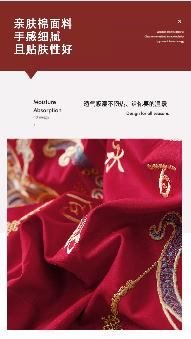 (总)苏源家居 2025新款 大红婚庆结婚喜庆刺绣轻奢四件套-吾家有喜系列,吾家有喜-红色,吾家有喜-金色