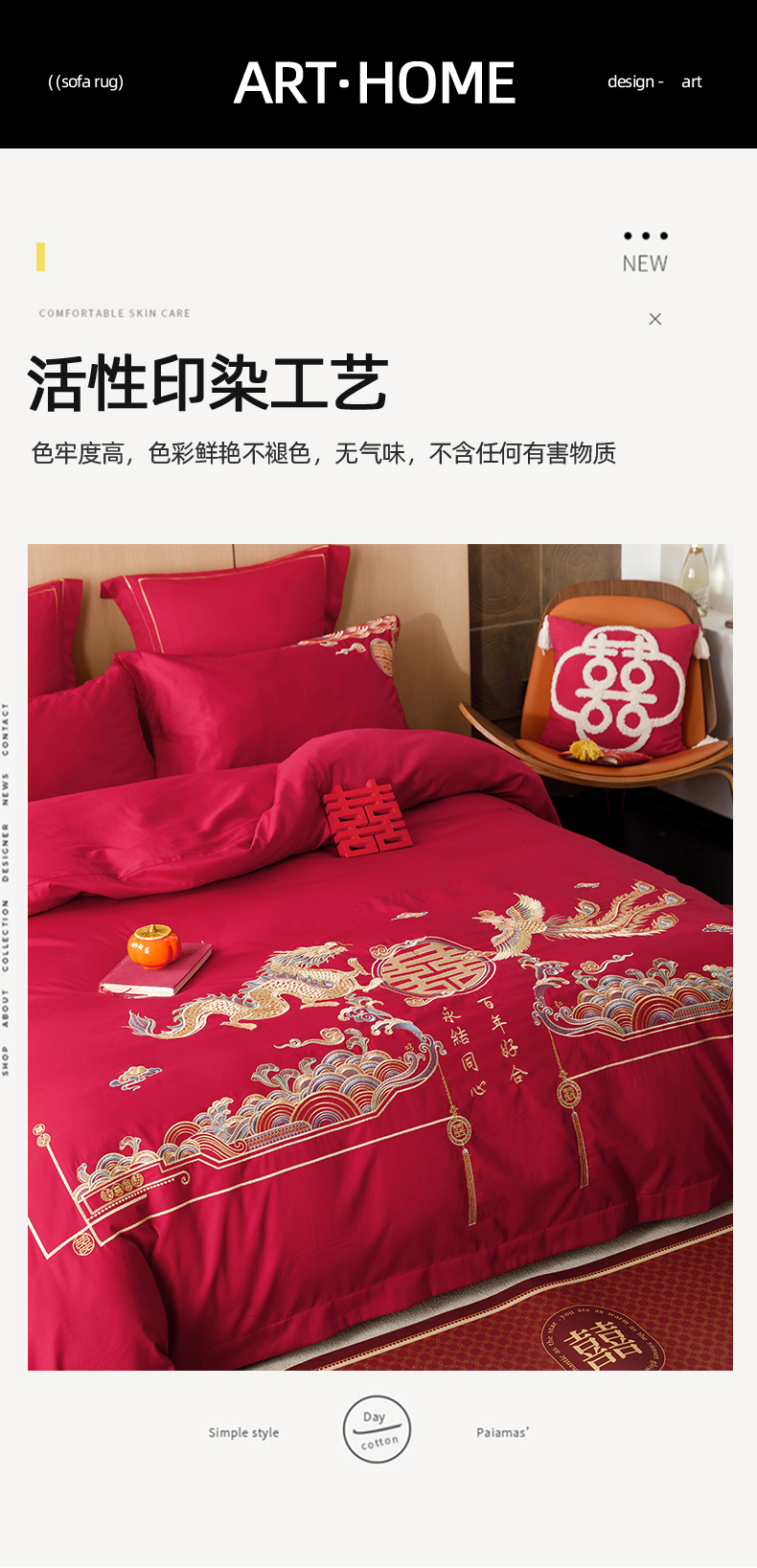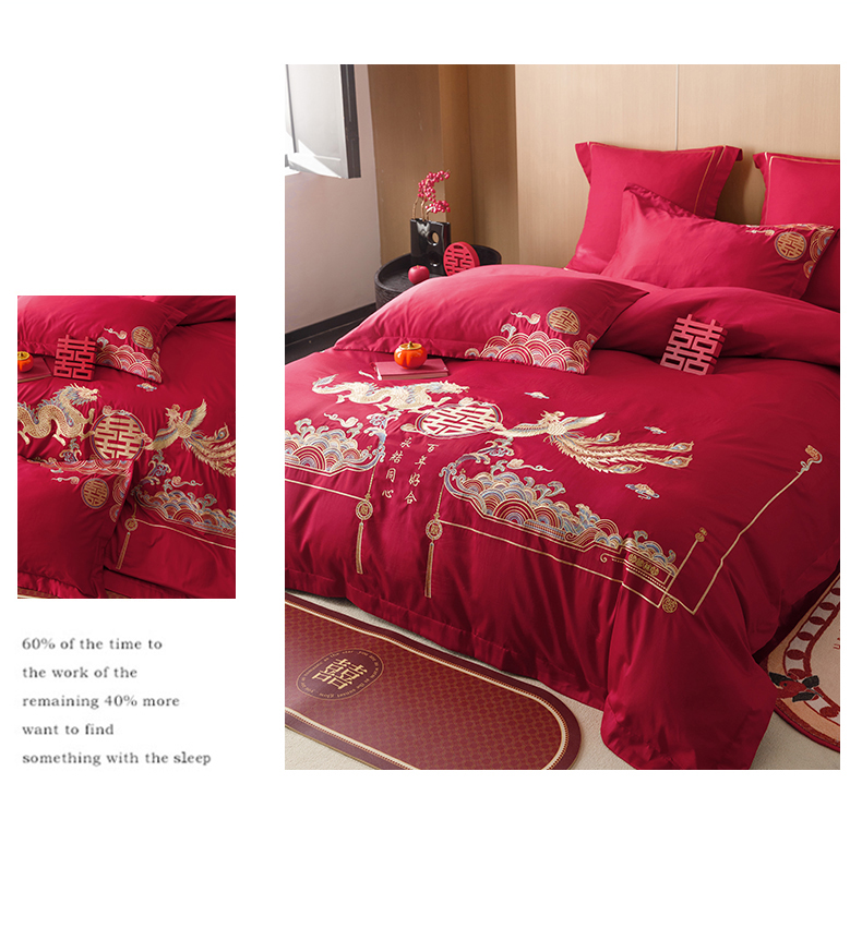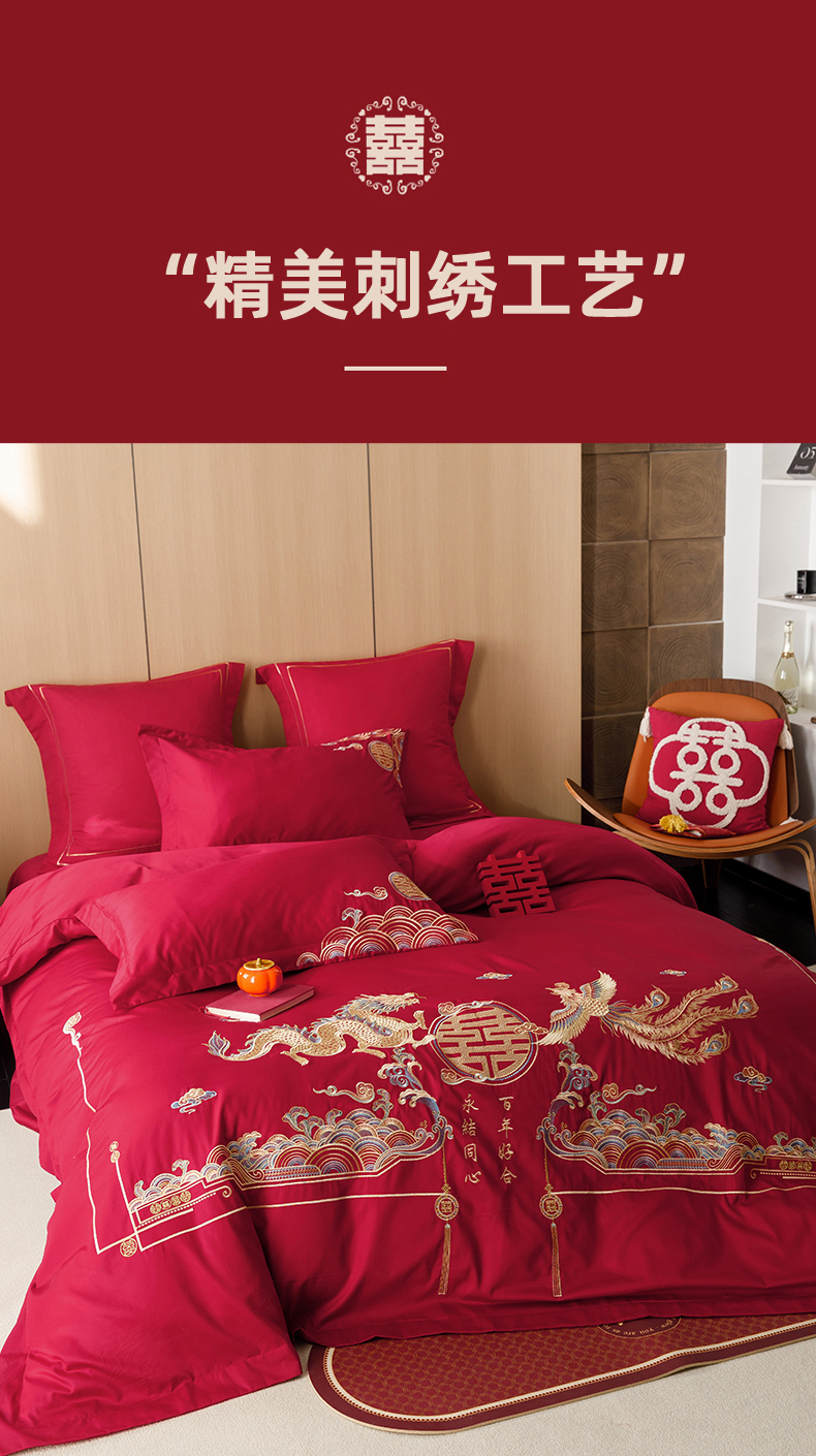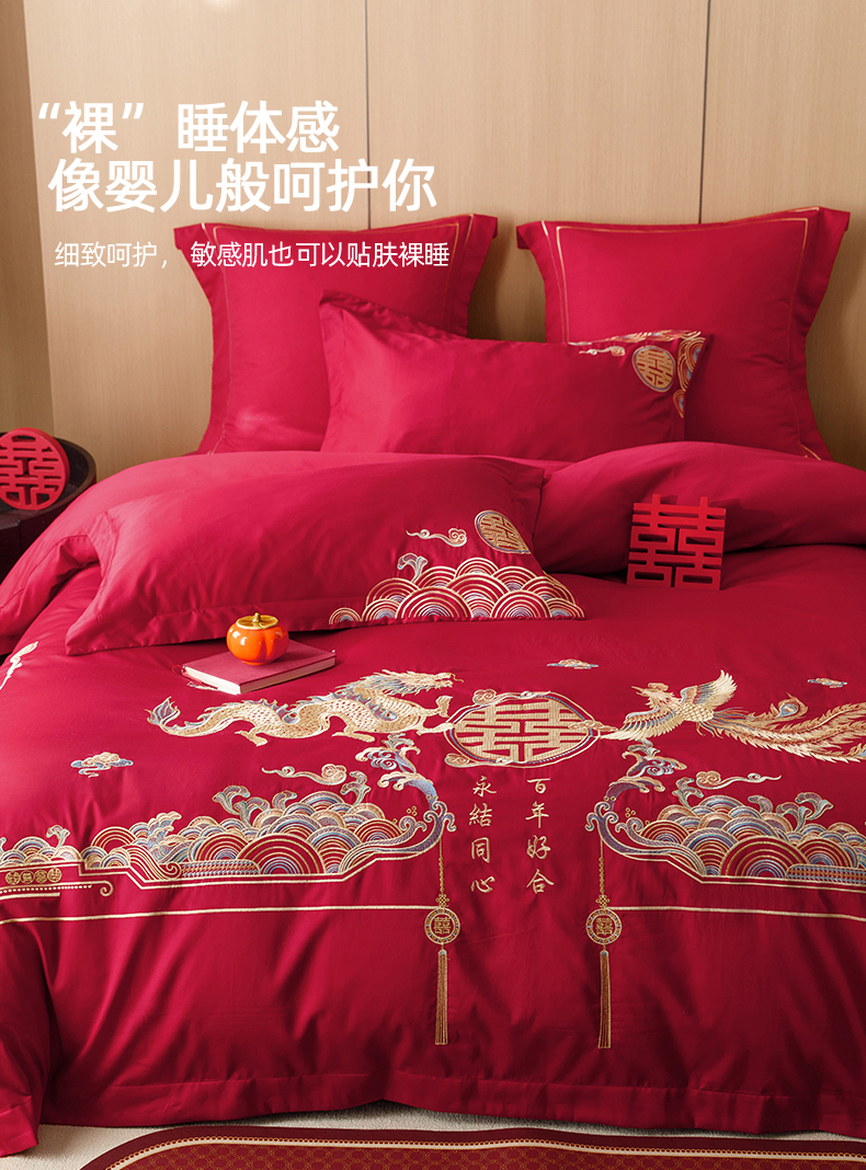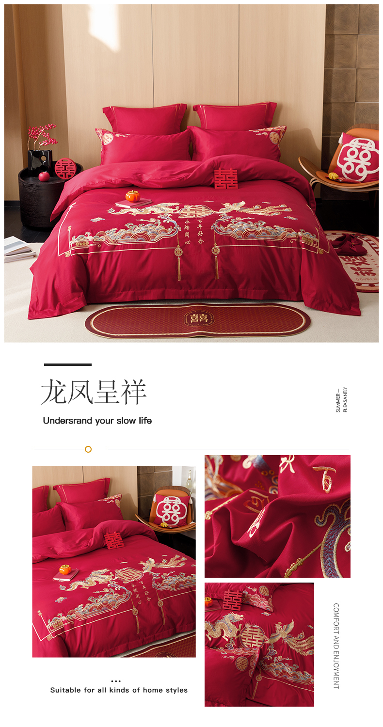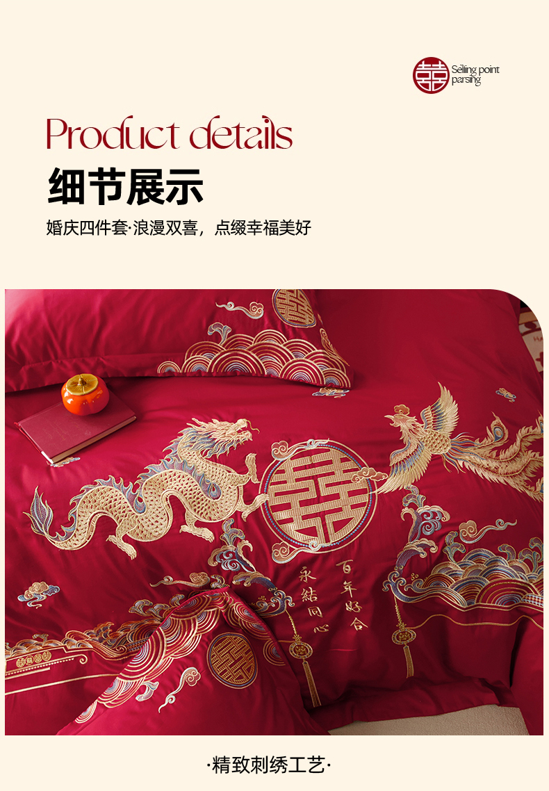 商品名称:苏源家居 2024新款新婚喜庆大红龙凤重工刺绣圆角床单四件套 百年好合