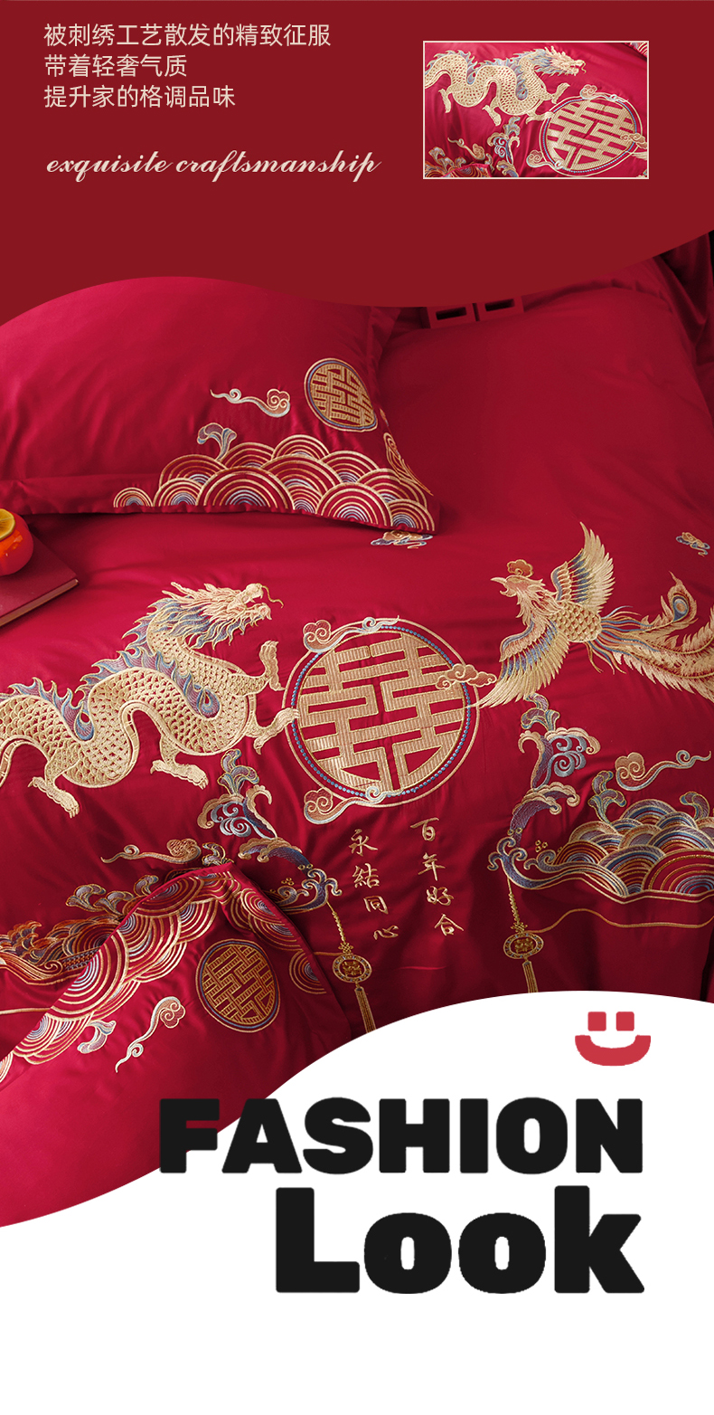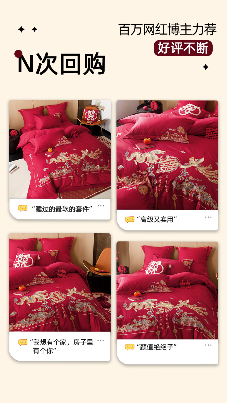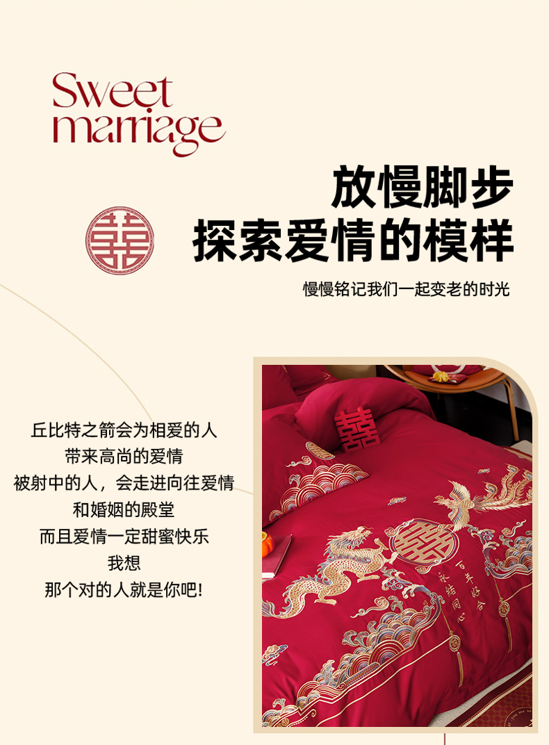 (总)苏源家居 2026新款渐变色刺绣龙凤大红色结婚四件套-小确幸,小确幸