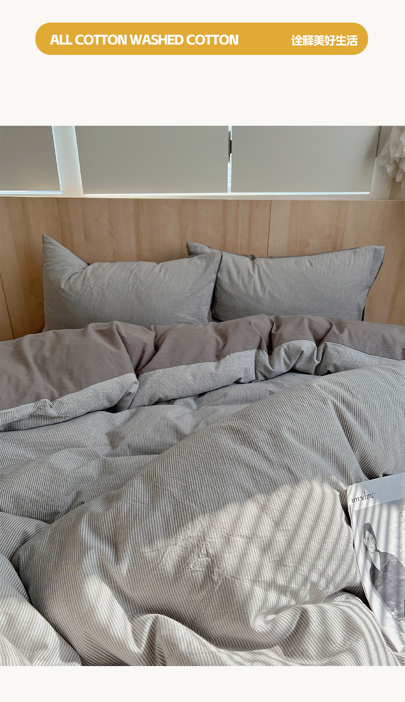 雅居纺家纺 2024新款色织水洗棉四件套 细条灰