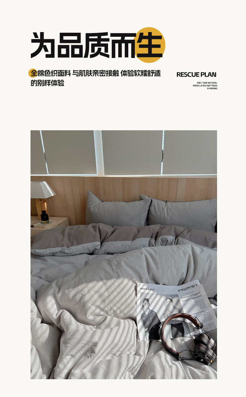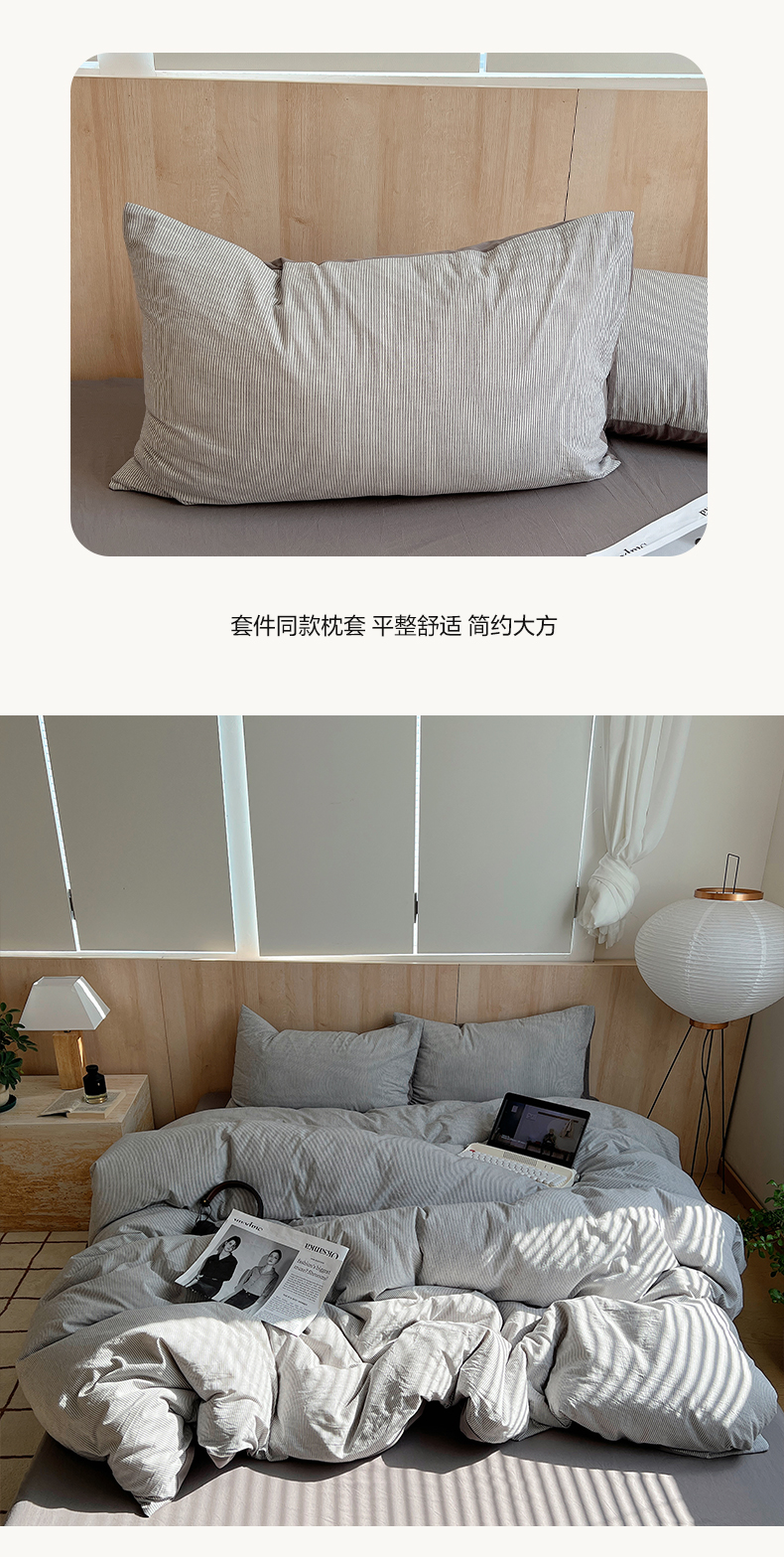 商品名称:雅居纺家纺 2024新款色织水洗棉四件套 细条灰