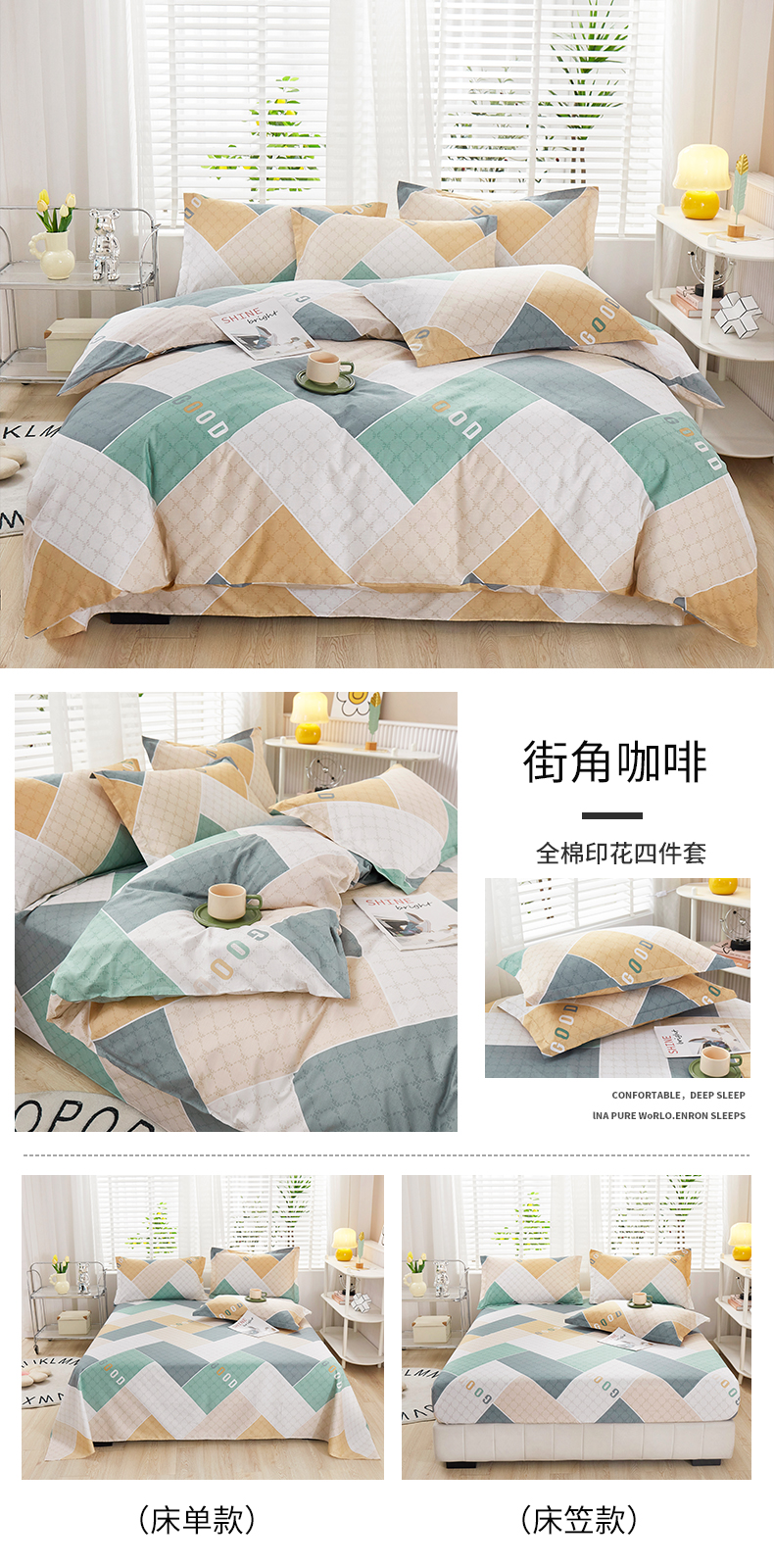 当前位置: 91家纺网 > 商品网购 > 床品套件 > 四件套 > 全棉普通四件套 > 名优家纺 2024新款13070套件系列 全棉印花四件套 街角咖啡