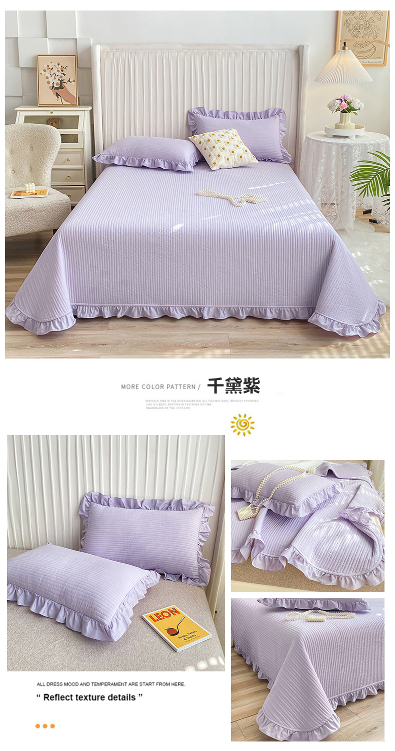 (总)大境 2024新款40S全棉水洗棉韩版荷叶边夹棉床盖三件套