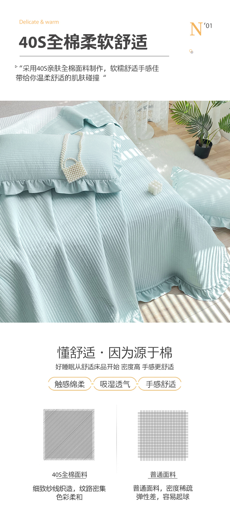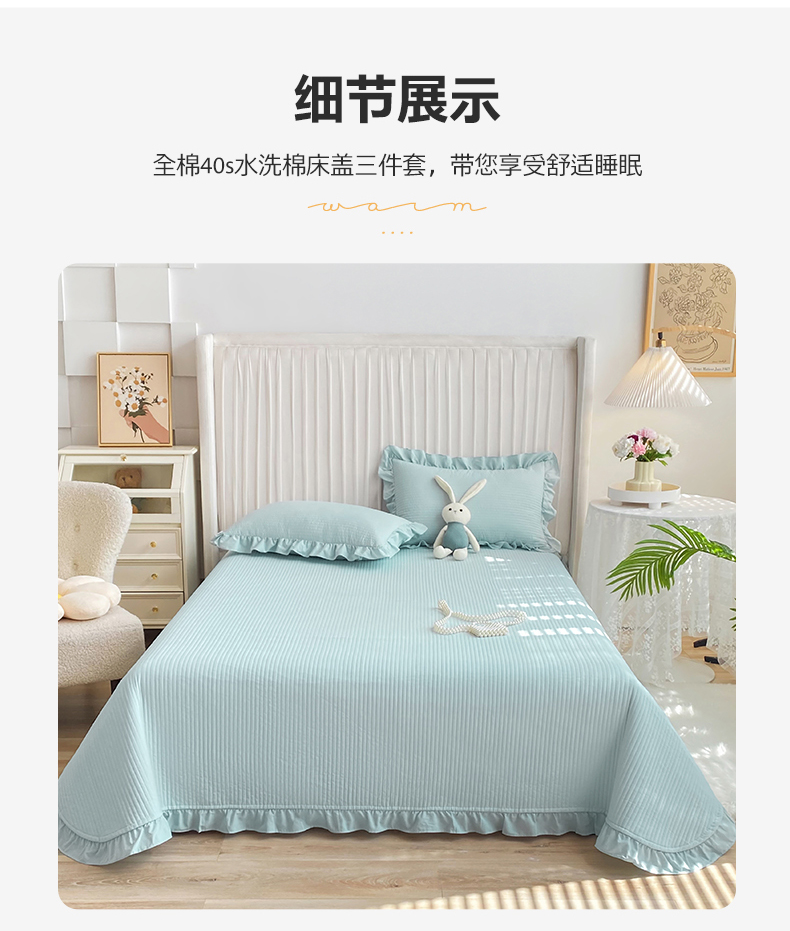 商品名称:(总)大境 2024新款40S全棉水洗棉韩版荷叶边夹棉床盖三件套