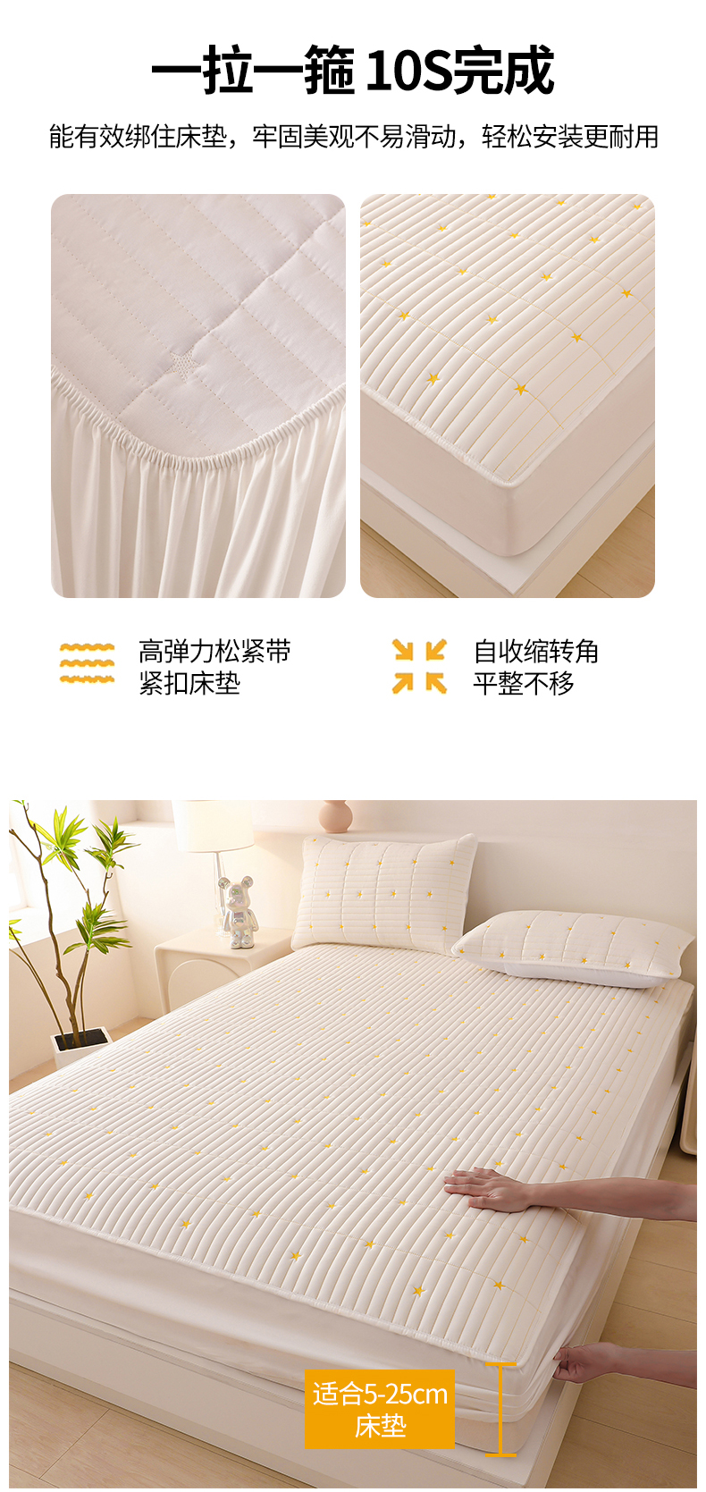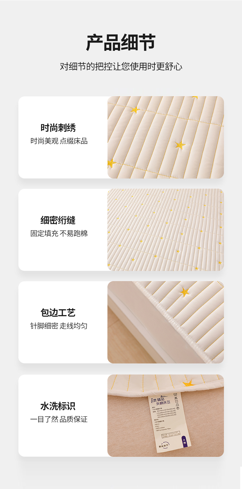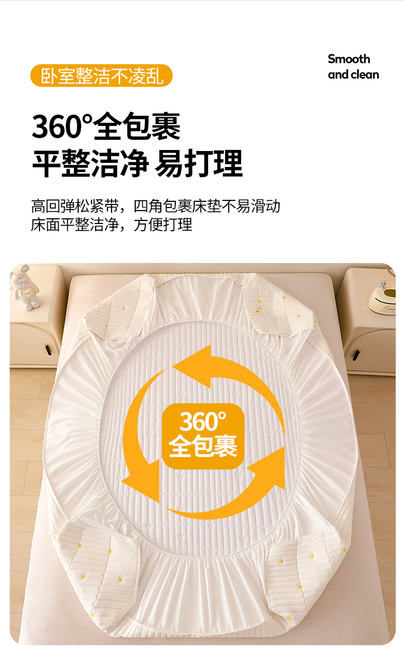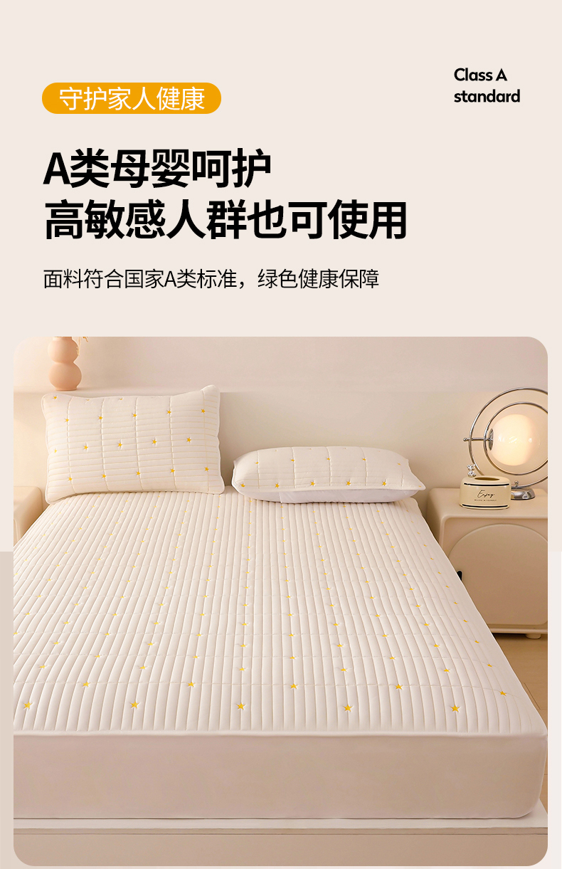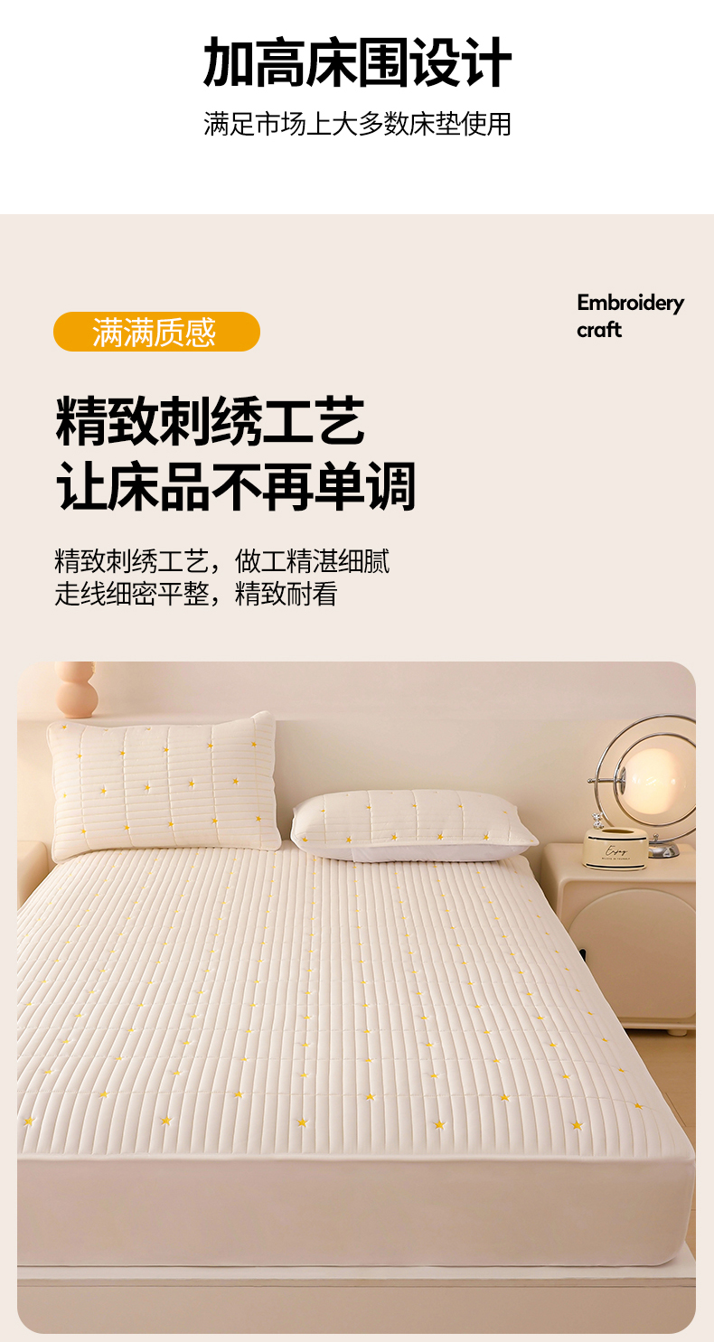 • 91家纺网 家纺一手货源 找家纺 丝涟家居 2025新款A类水洗亲肤棉刺绣防水防污床笠--星河 星河-米白