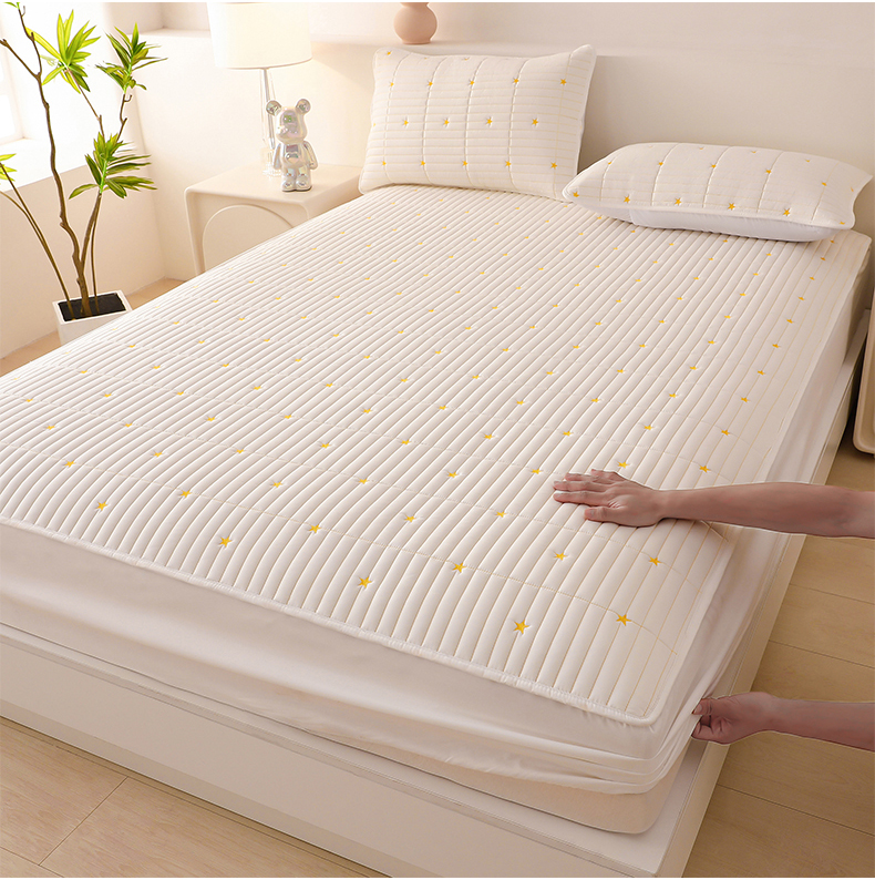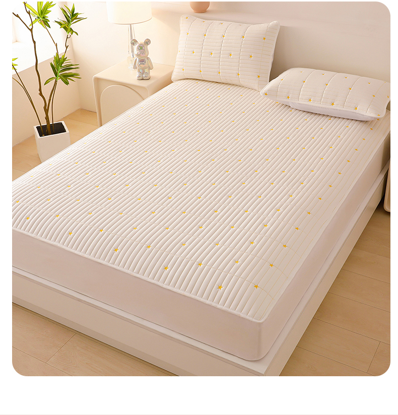 丝涟家居 2025新款A类水洗亲肤棉刺绣防水防污床笠--星河 星河-米白