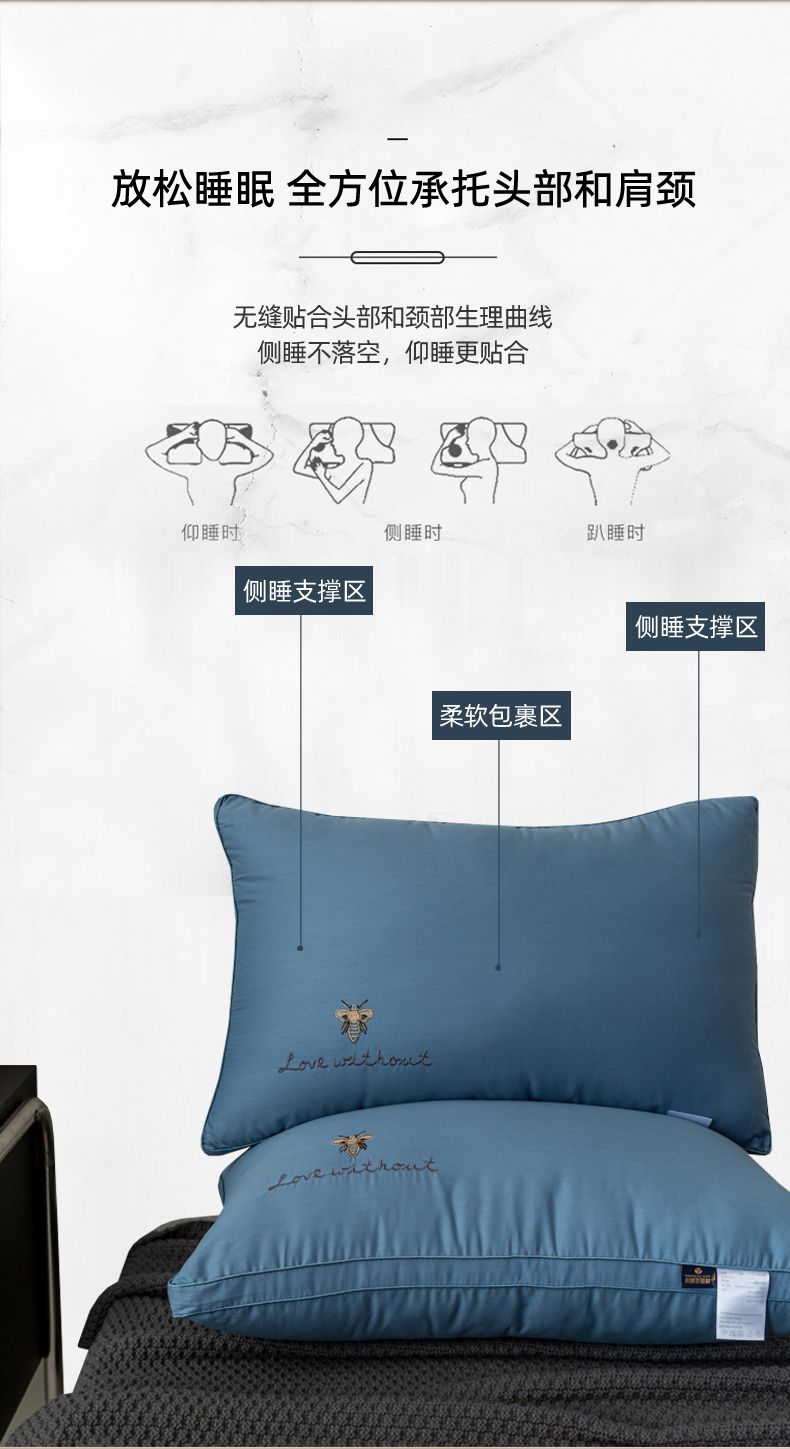 商品名称:(总)亦帆 2024新款枕头枕芯全棉小蜜蜂羽丝枕