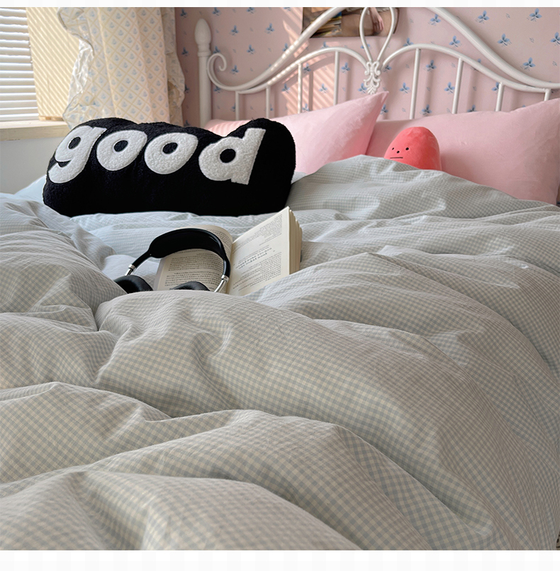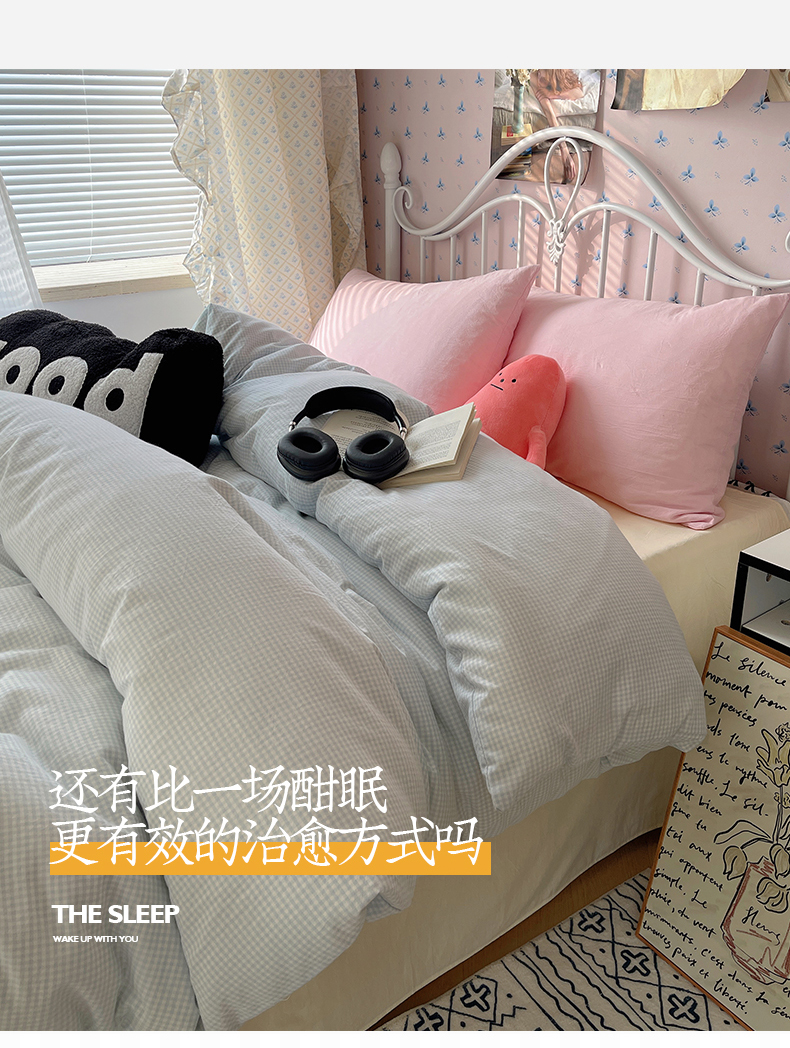 桃子家居 2024新款ins少女软糯奶油撞色色织水洗棉纯棉系列四件套 水洗棉-色织小蓝格