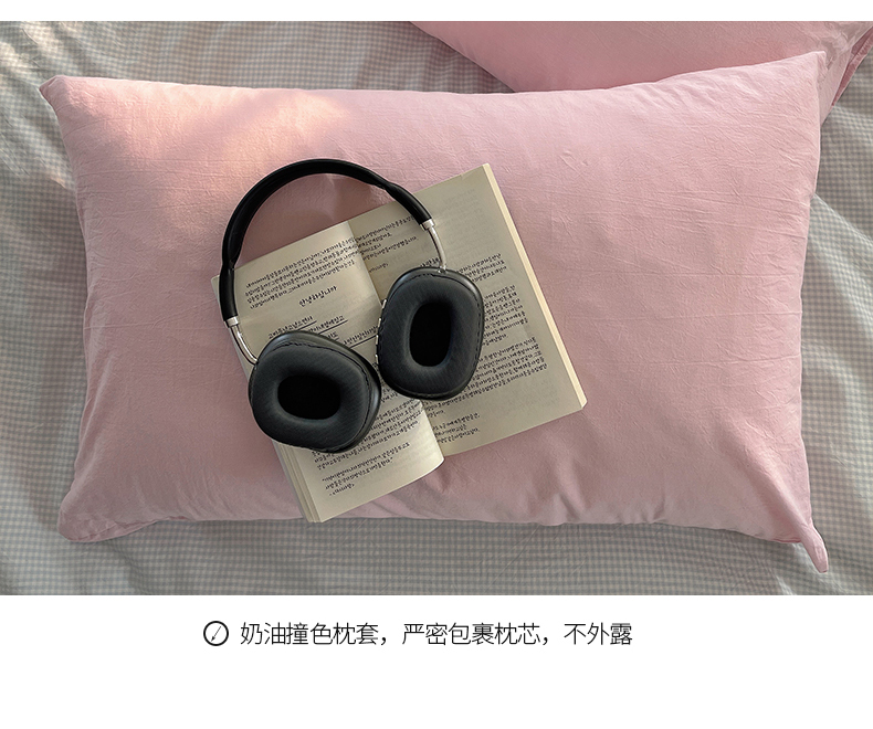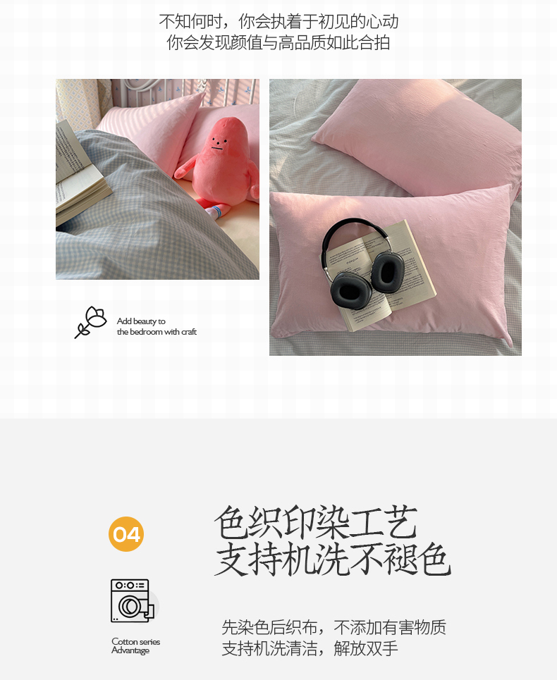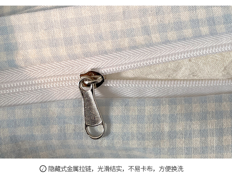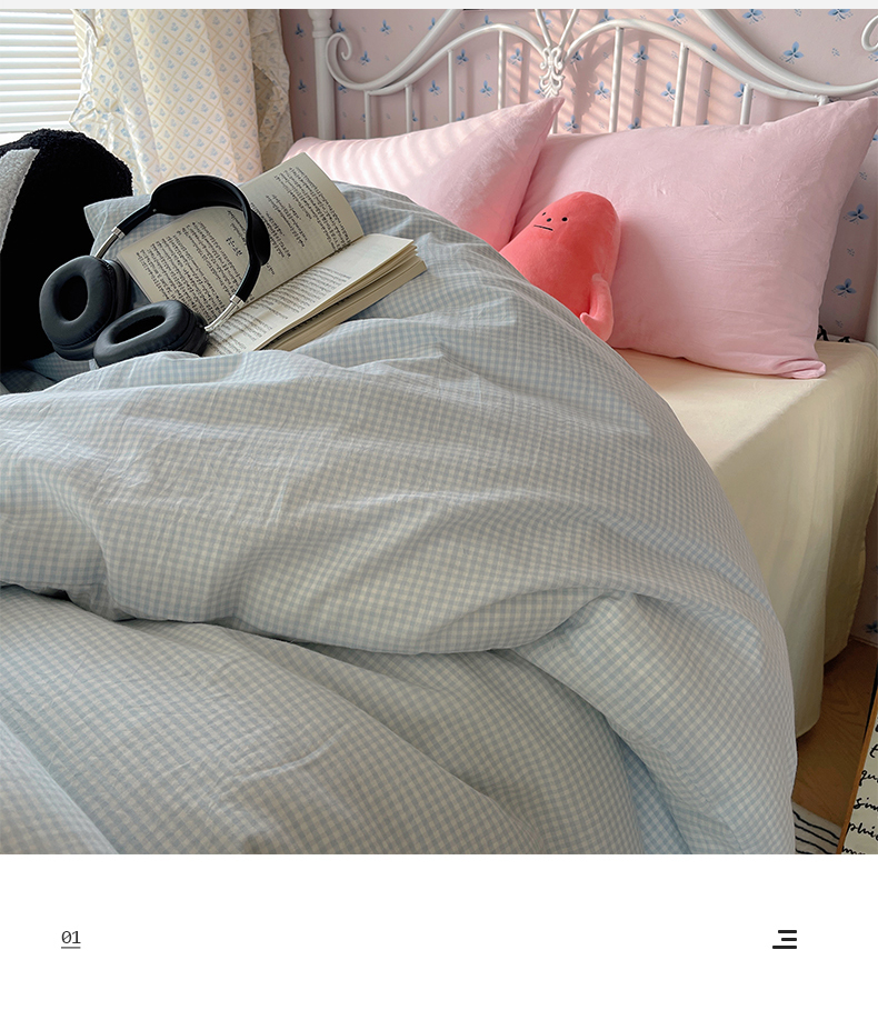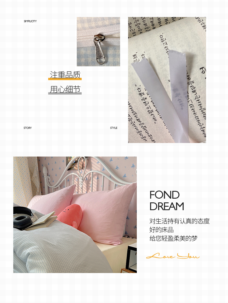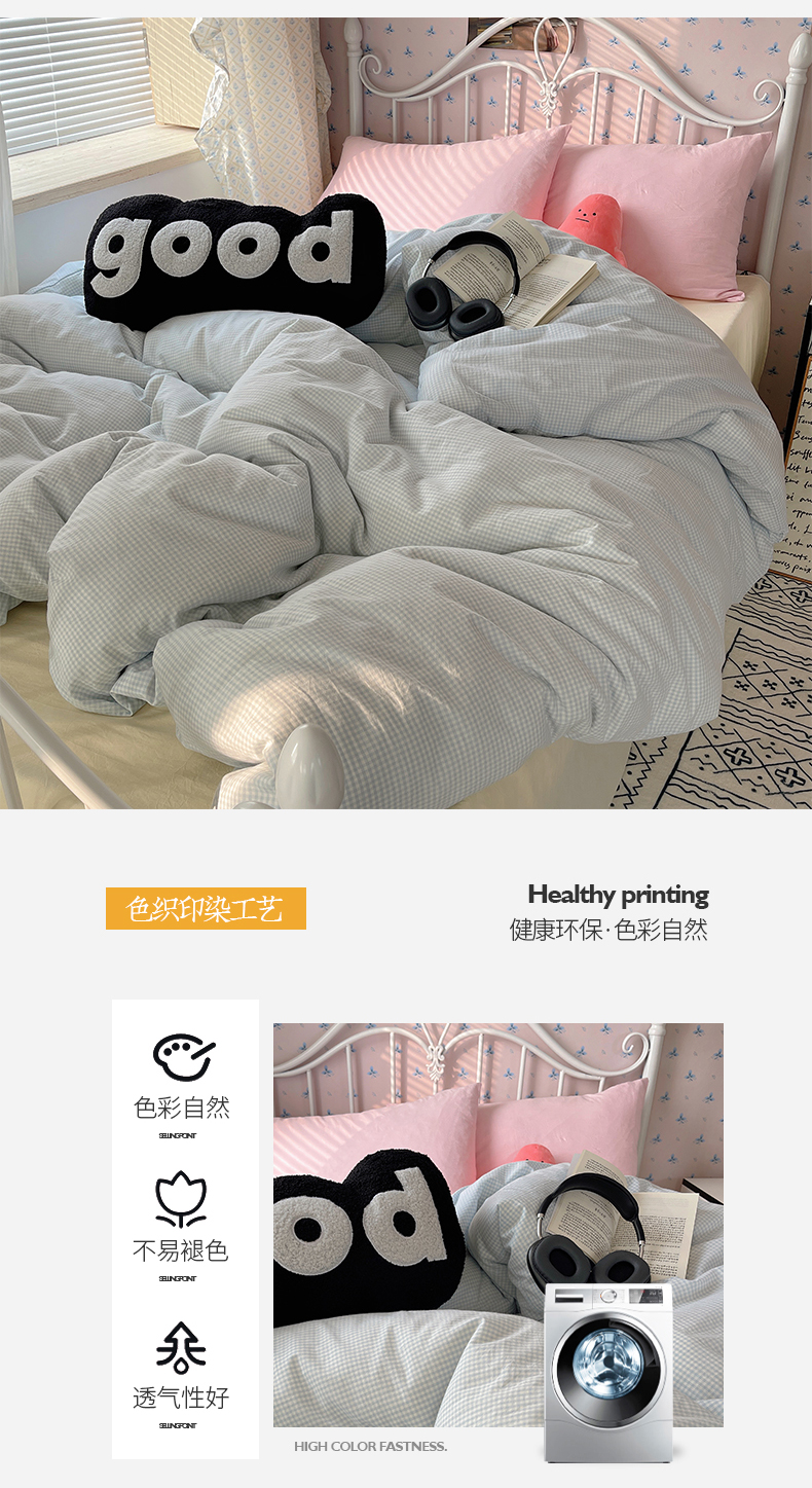 商品名称:桃子家居 2024新款ins少女软糯奶油撞色色织水洗棉纯棉系列四件套 水洗棉-色织小蓝格