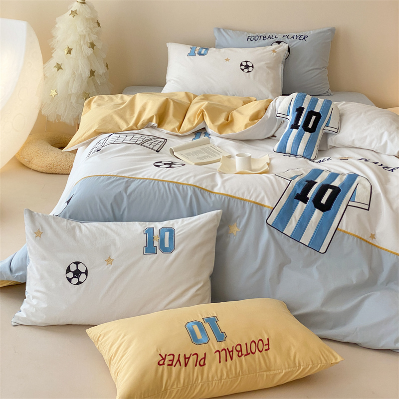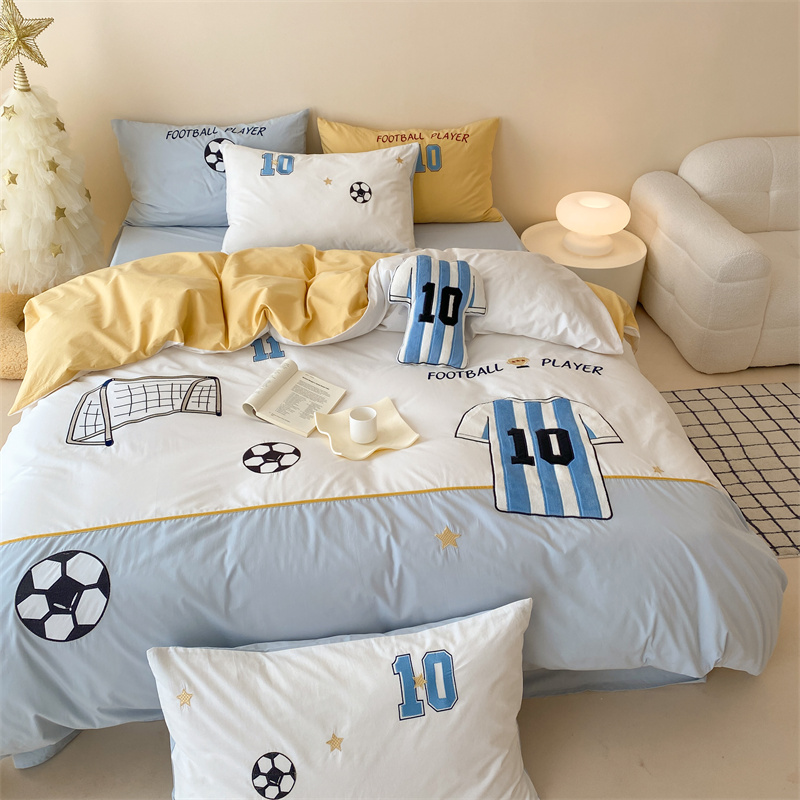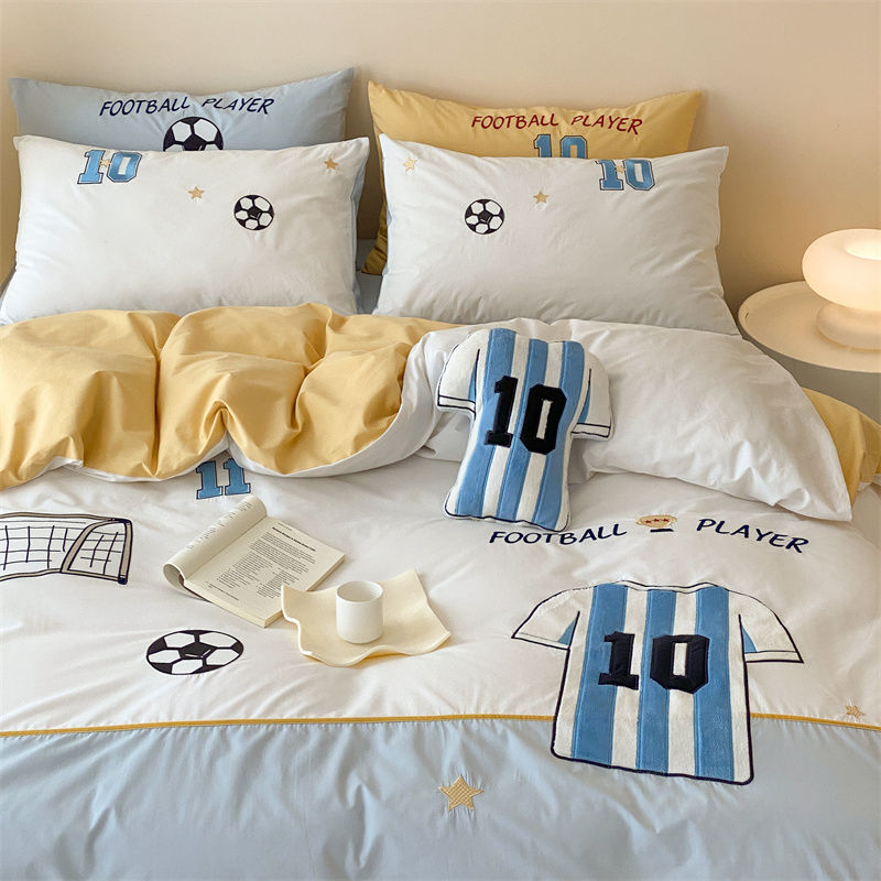 商品名称:(总)星野 2024新款加厚40s水洗棉刺绣四件套-足球梦