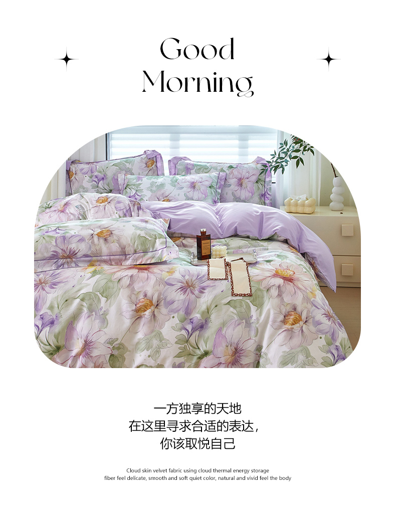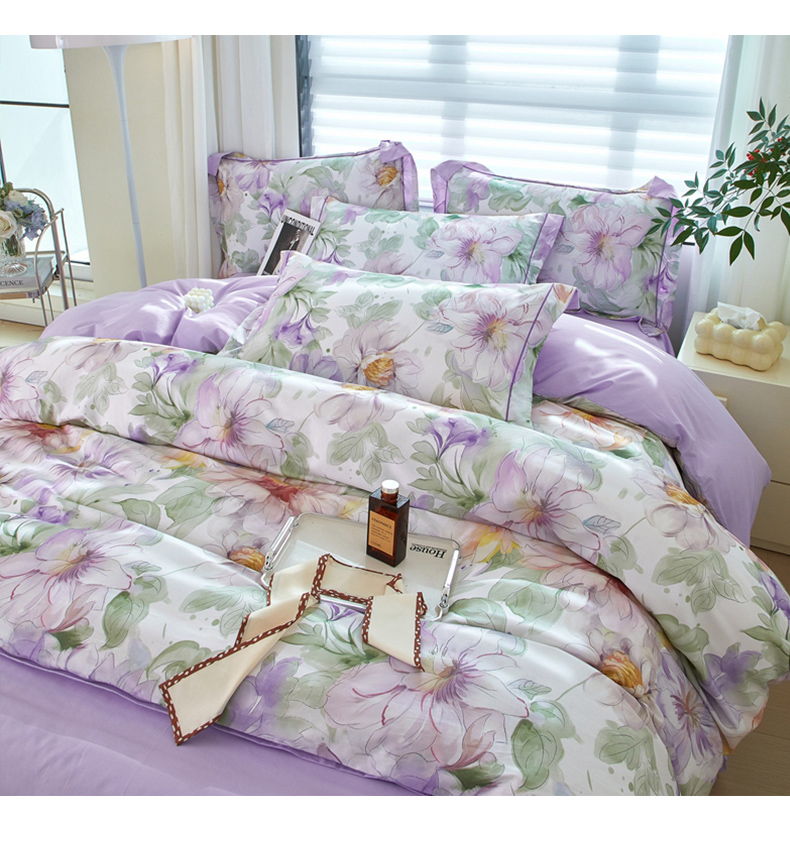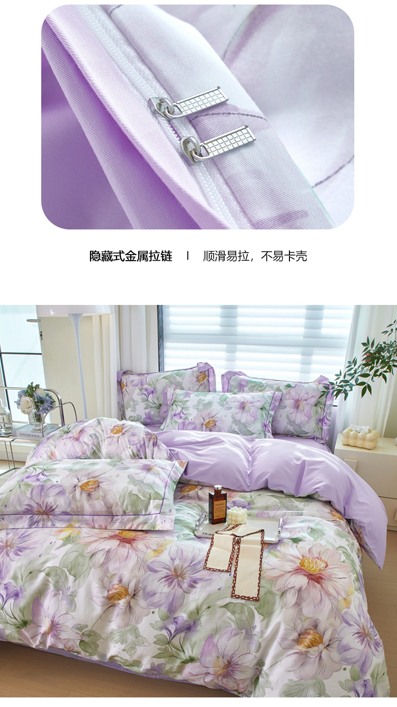 启航家居 2025春夏全棉铂金棉数码印花四件套 花的旅途紫