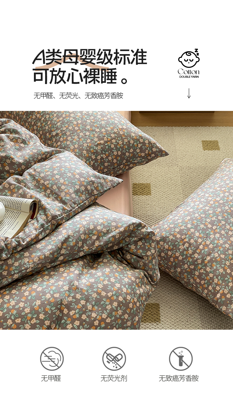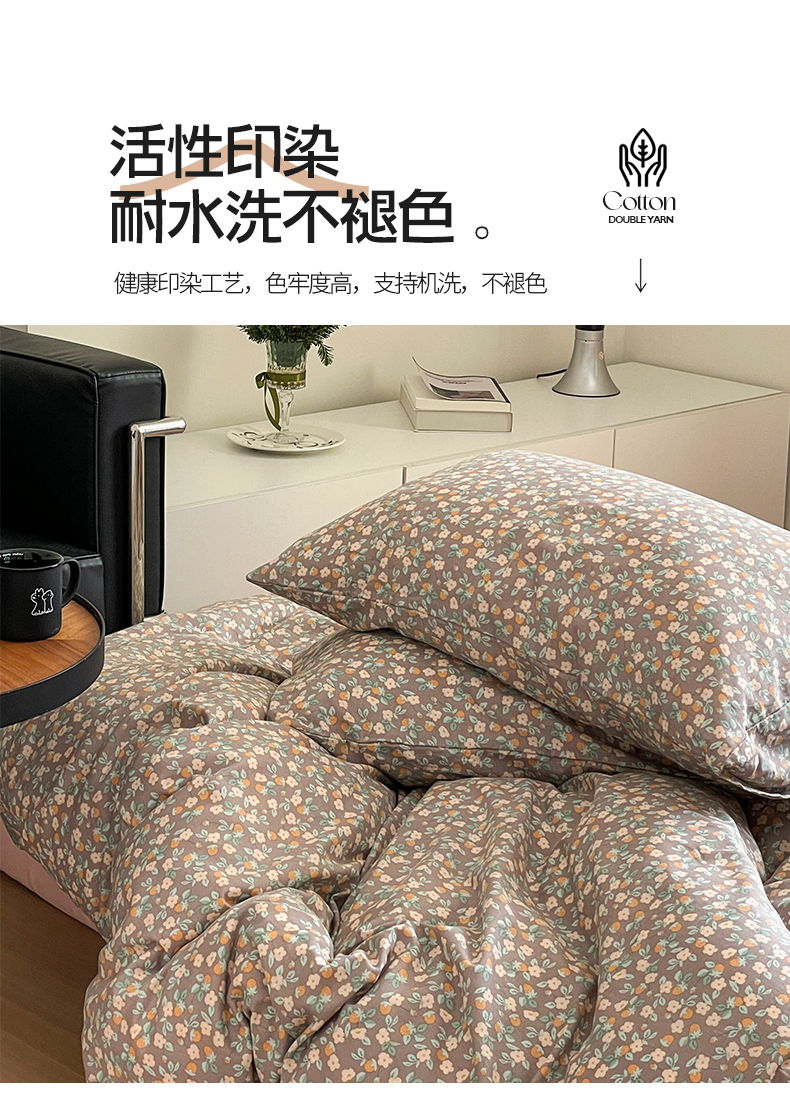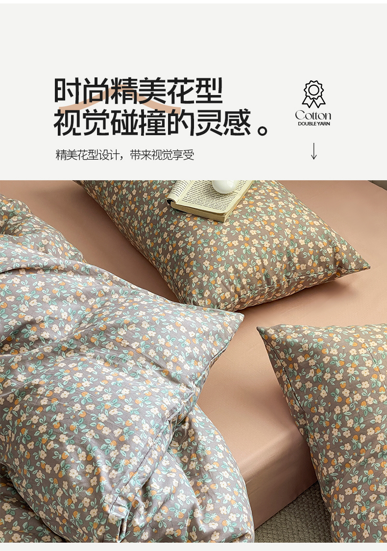 (总)窝米2022新款13370全棉四件套花卉系列,春风里,青柚,秋收,水波纹米驼,水波纹炭黑,恬谧,夏花,云溪红,云溪黄