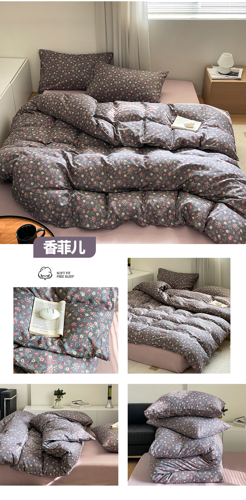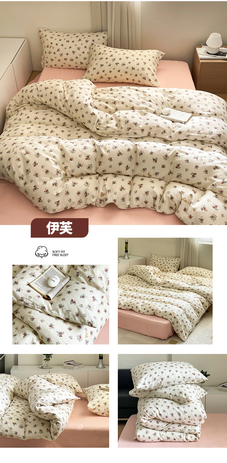 窝米 2020春夏新品全棉13372四件套小波西风系列小花花,小花花