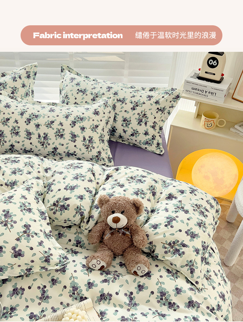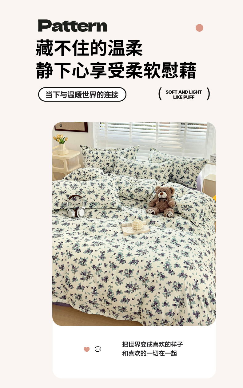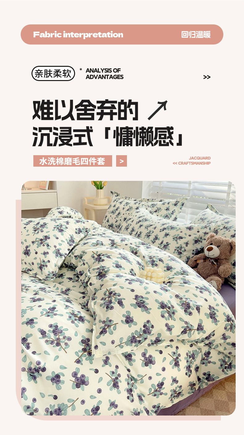 商品名称:楠沐家纺 2025新款亲肤柔软水洗棉磨毛印花被套 紫雅