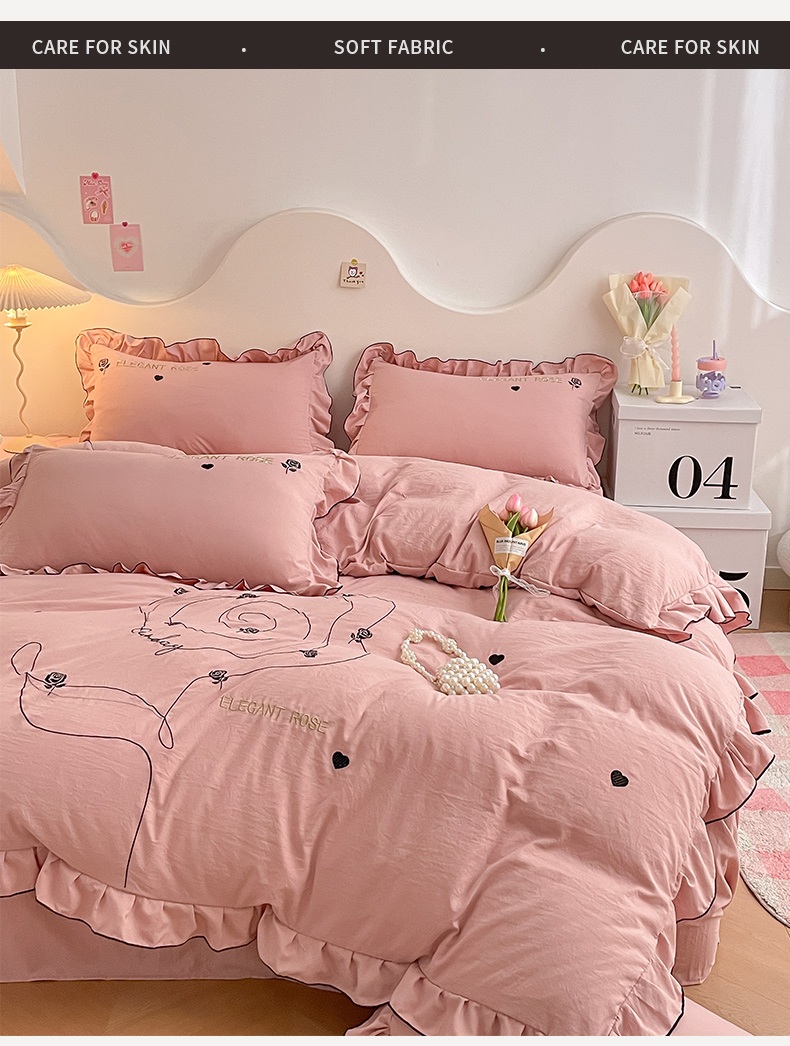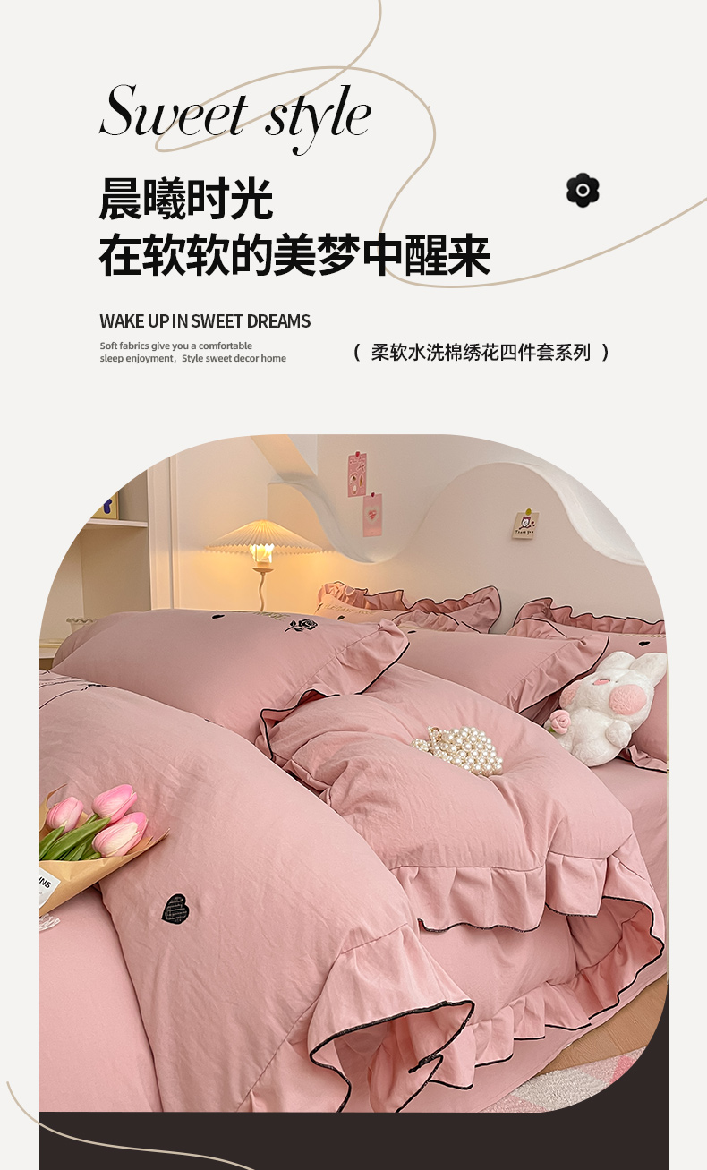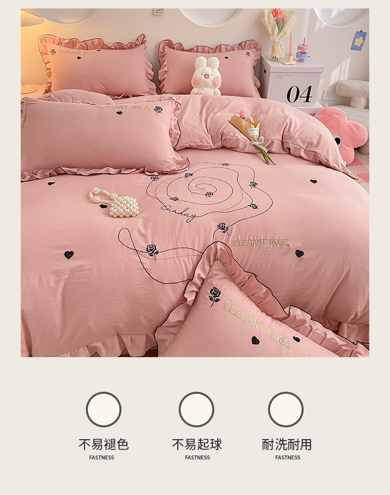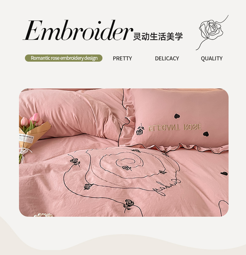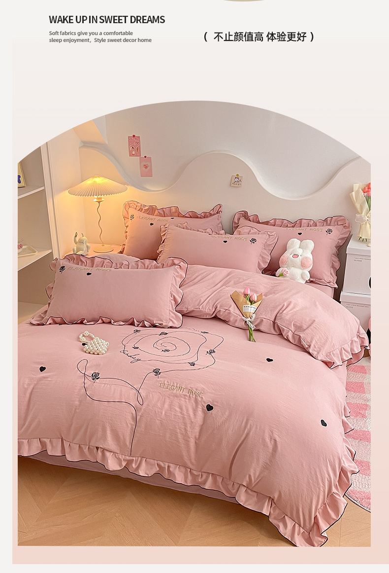 商品名称:AB家纺 2024新款水洗棉绣花四件套-唯一系列 唯一苏芳粉