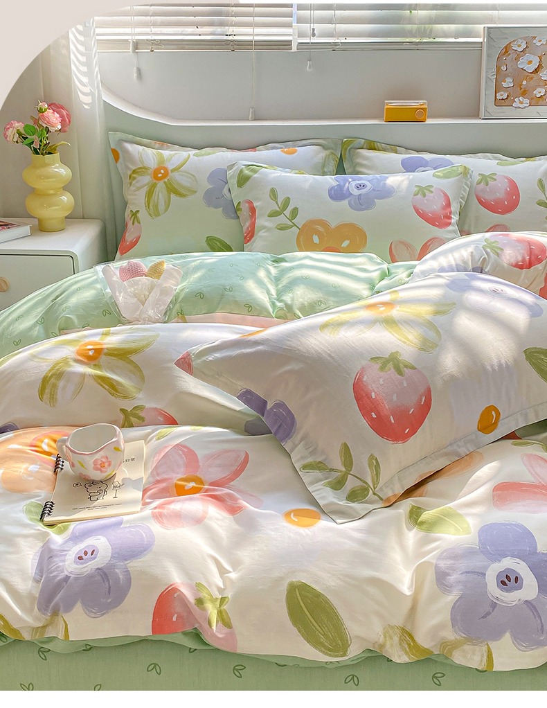 当前位置: 91家纺网 > 商品网购 > 床品套件 > 四件套 > 全棉活性四件套 > 朵安家纺 2024新款12868全棉四件套系列-四件套 草莓仙子