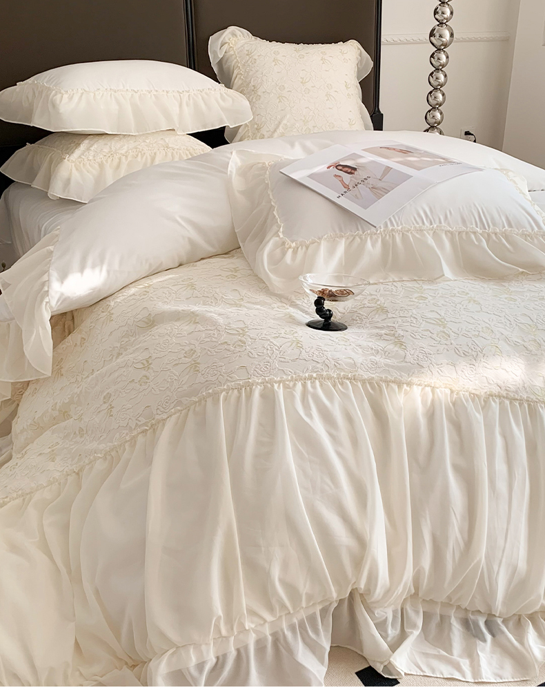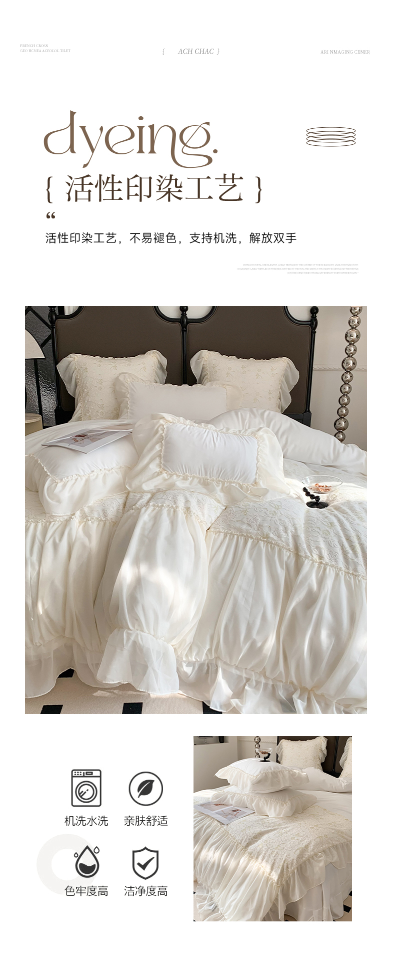 (总)吾欢心 2025新款公主风雪纺边四季通用夹棉床盖,床盖白,床盖粉,床盖黄,床盖咖,床盖绿,床盖抹茶绿,床盖紫
