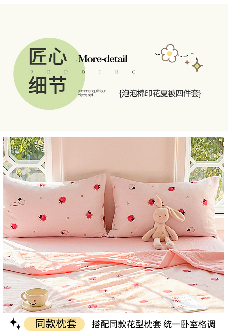 默忆 2025新款泡芙棉泡泡棉印花夏被四件套夏凉被空调被 甜蜜莓莓