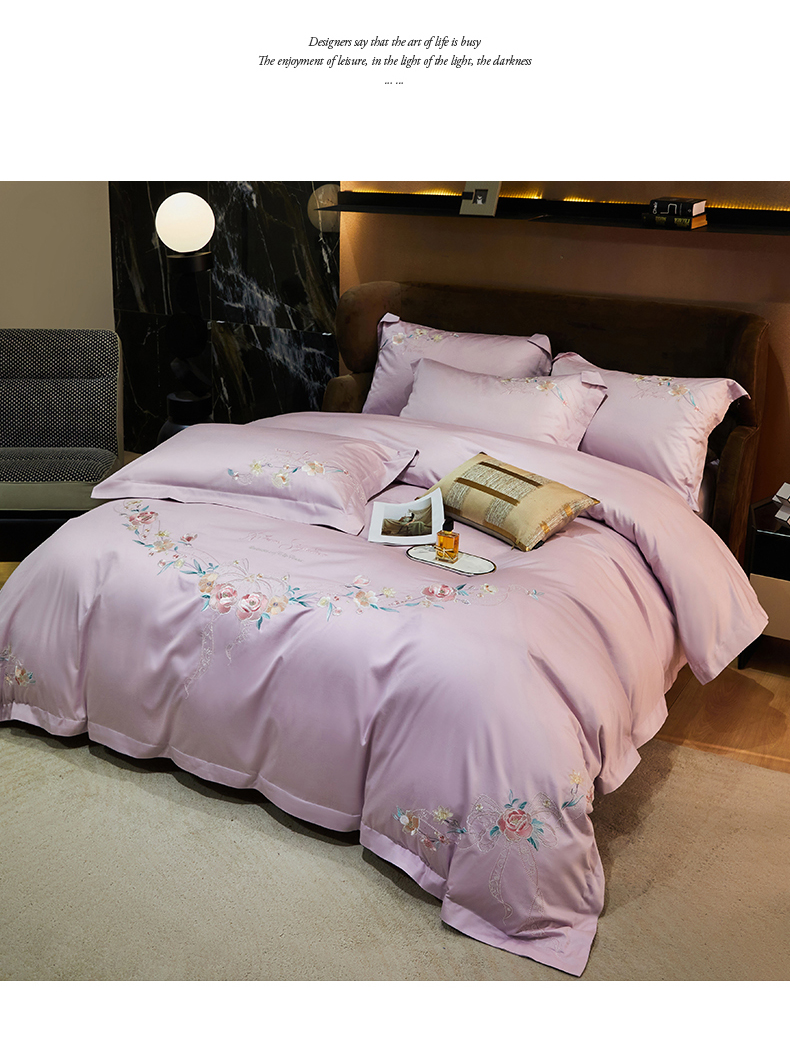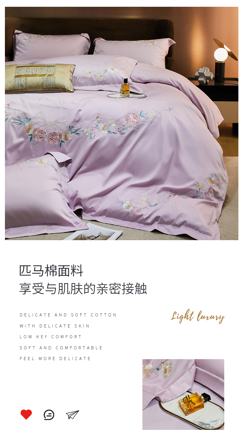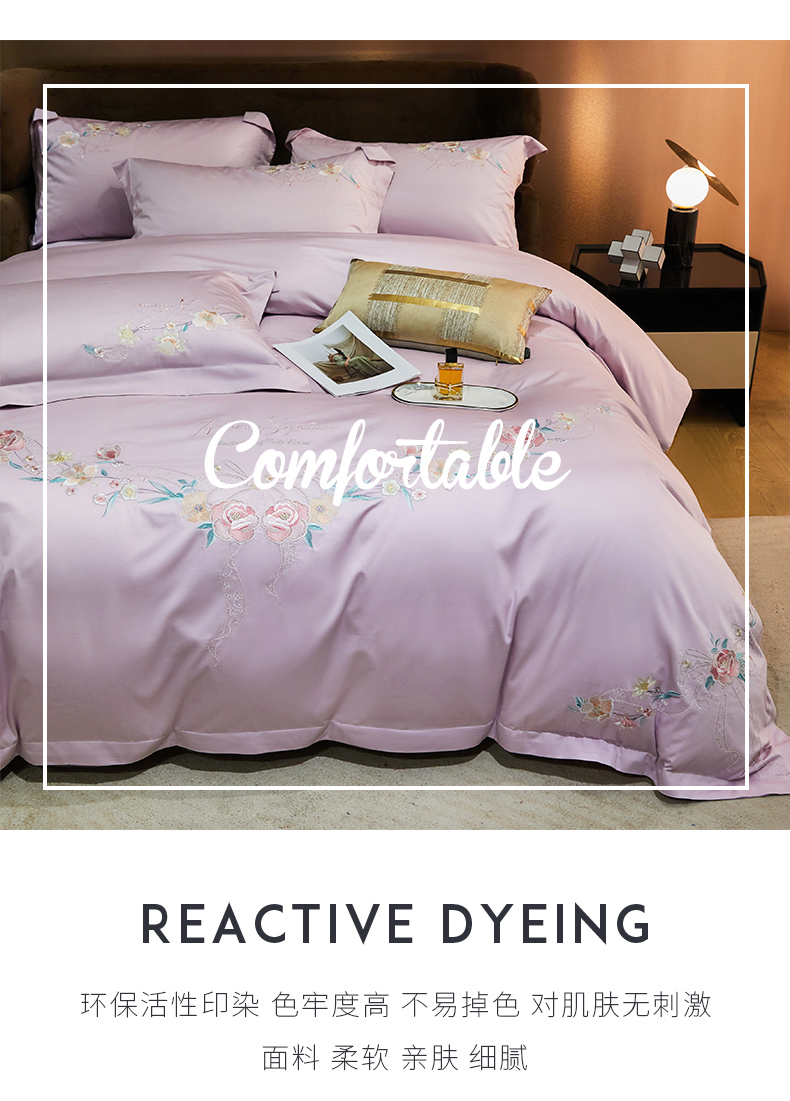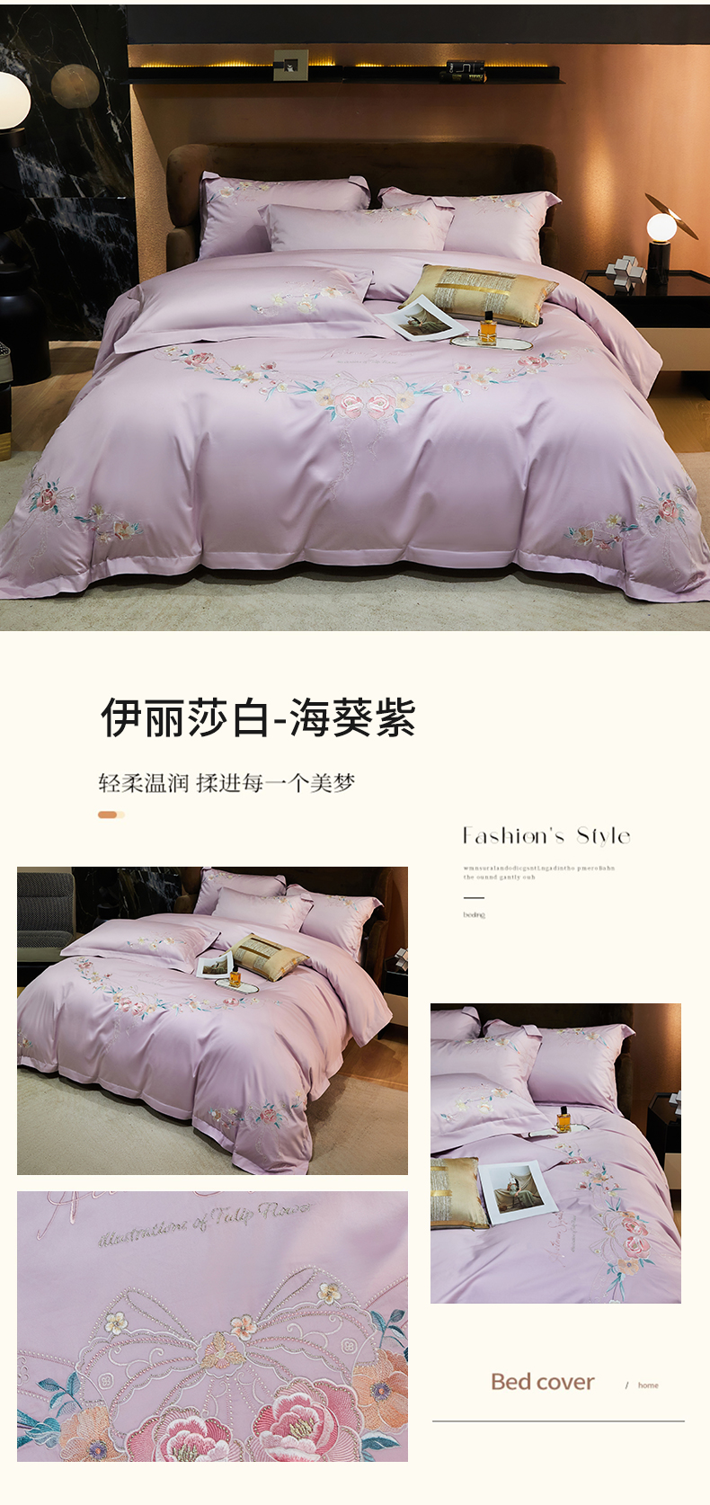 宏羽纺2024新款高支高密全棉刺绣四件套 伊丽莎白系列 伊丽莎白 海葵紫