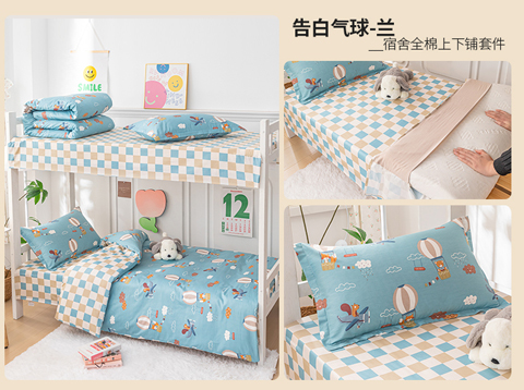 商品名称:纯棉印花13070学生三件套寝室全棉宿舍床套件上下铺床品 告白气球-兰