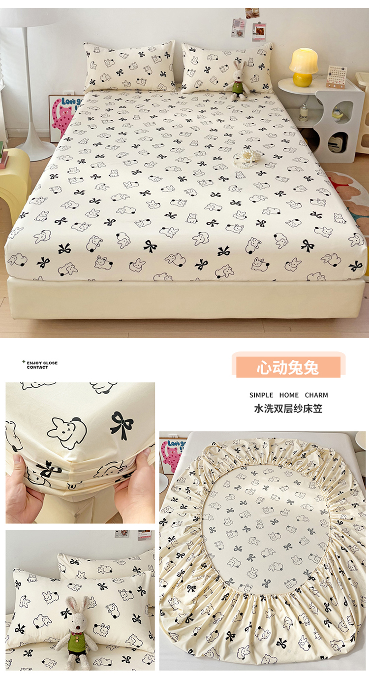商品名称:纽缦家纺 2024水洗双层纱单床笠 心动兔兔