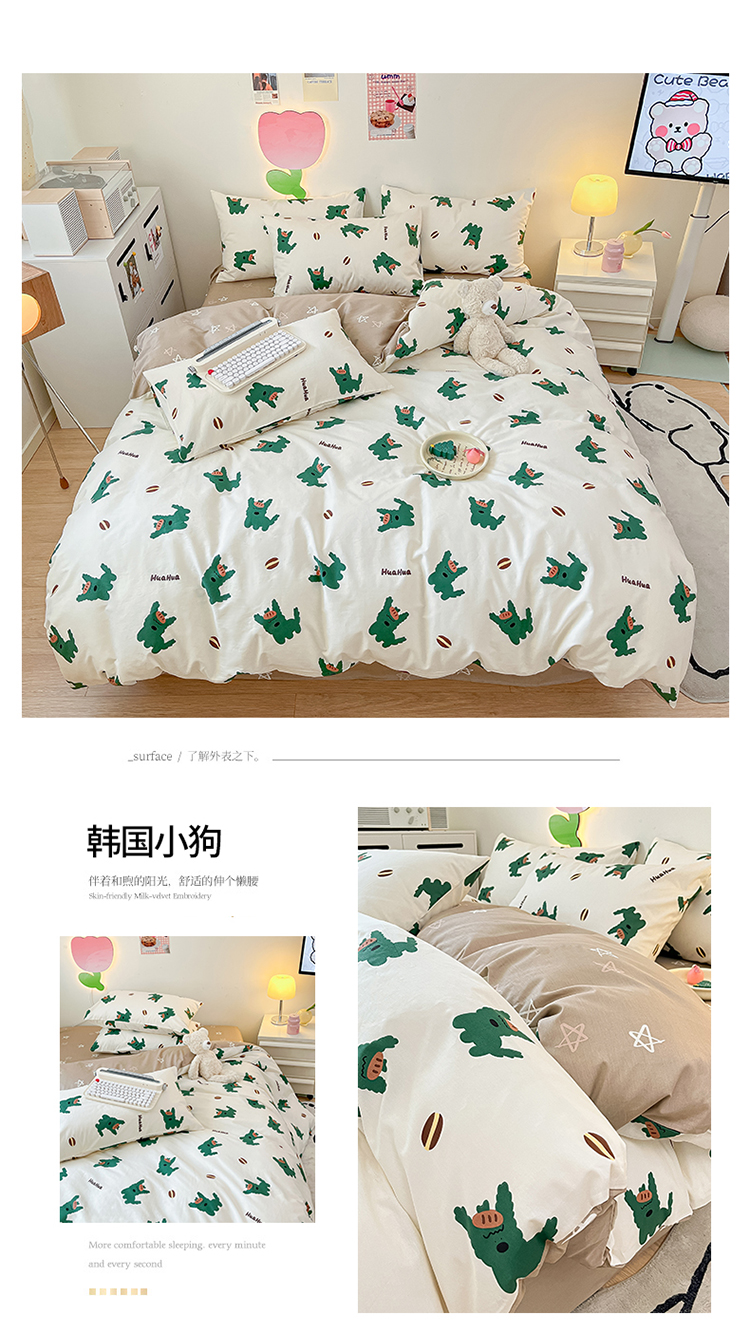 当前位置: 91家纺网 > 商品网购 > 床品套件 > 四件套 > 全棉普通四件套 > 川悦生活 2024爆款13372全棉卡通小清新四件套三件套 韩国小狗