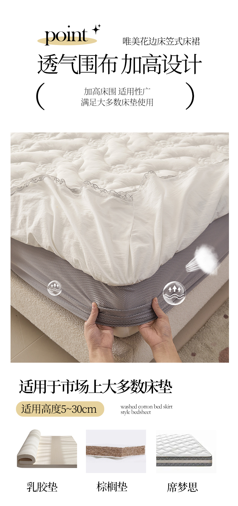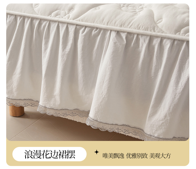 3C 2024新款全棉水洗棉大豆夹棉床裙式床笠 奶昔白