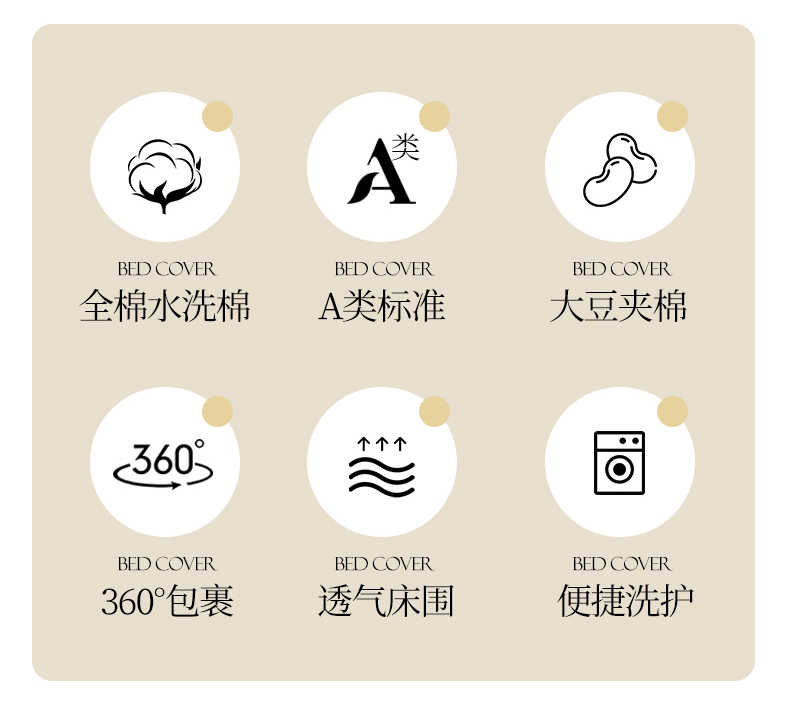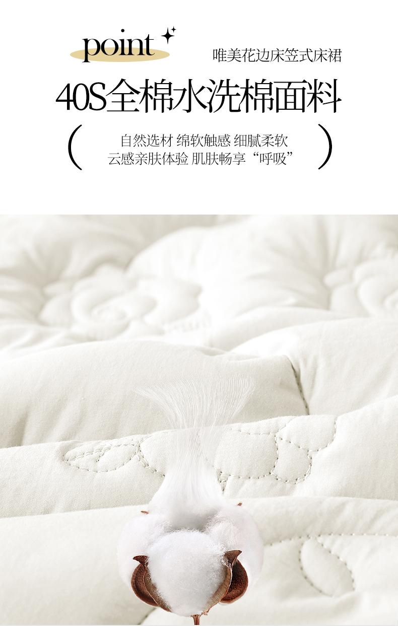 商品名称:3C 2024新款全棉水洗棉大豆夹棉床裙式床笠 奶昔白