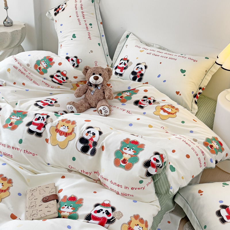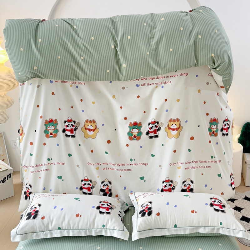 商品名称:云锦家居 2024新款13070纯棉印花吊边款一字绣四件套 炫彩乐园