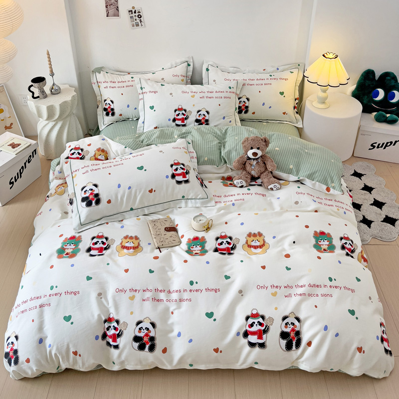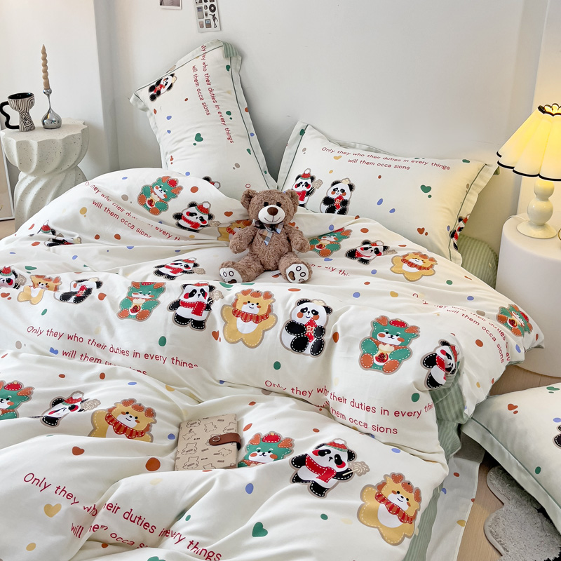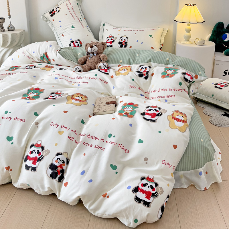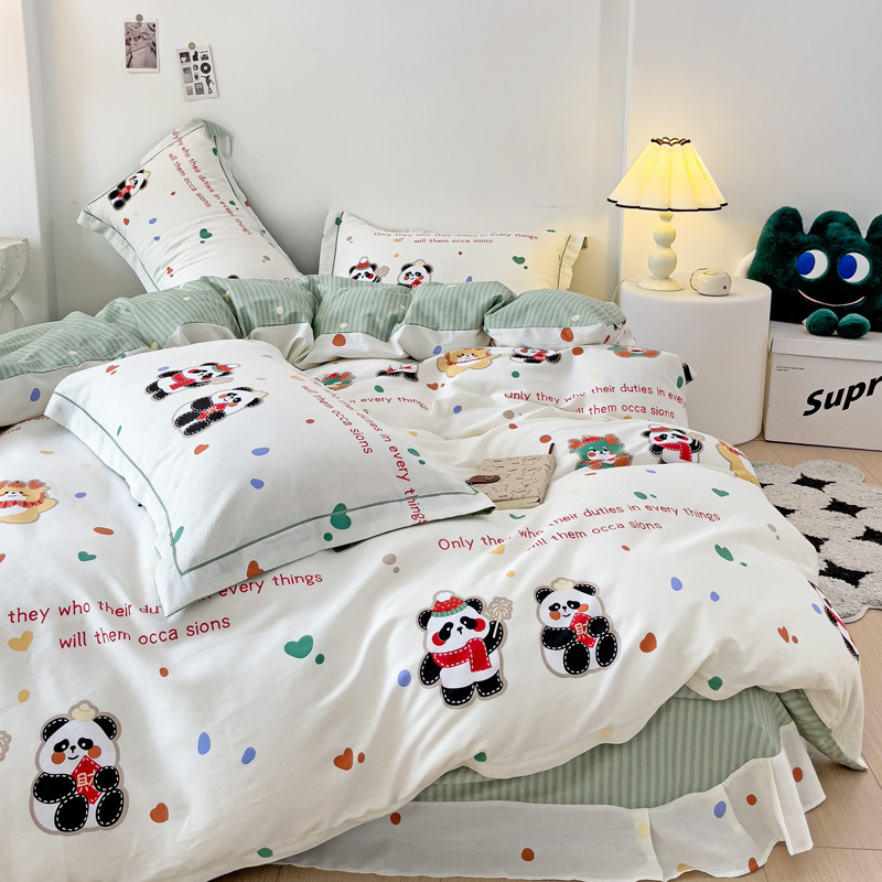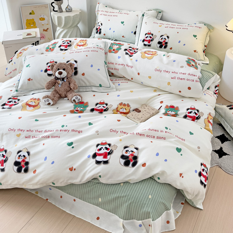 云锦家居 2024新款13070纯棉印花吊边款一字绣四件套 炫彩乐园