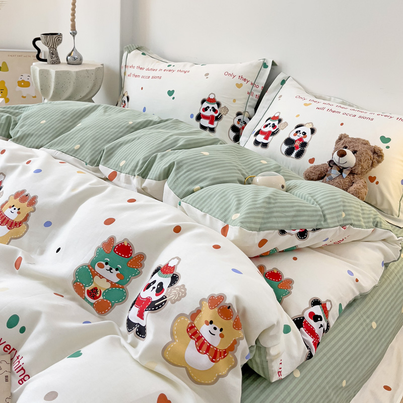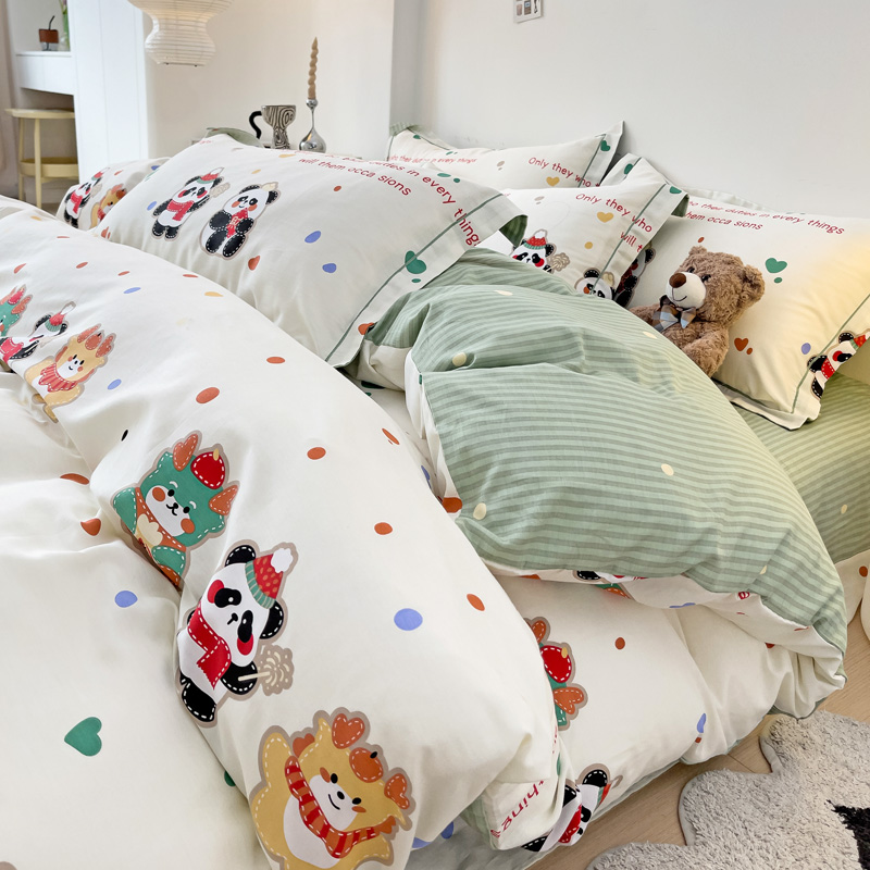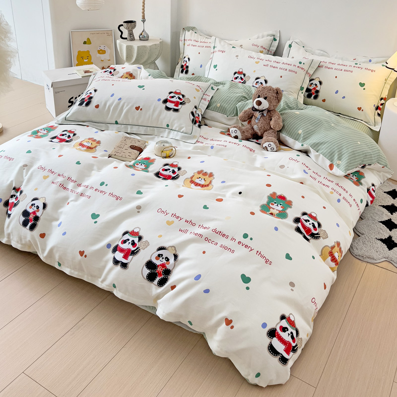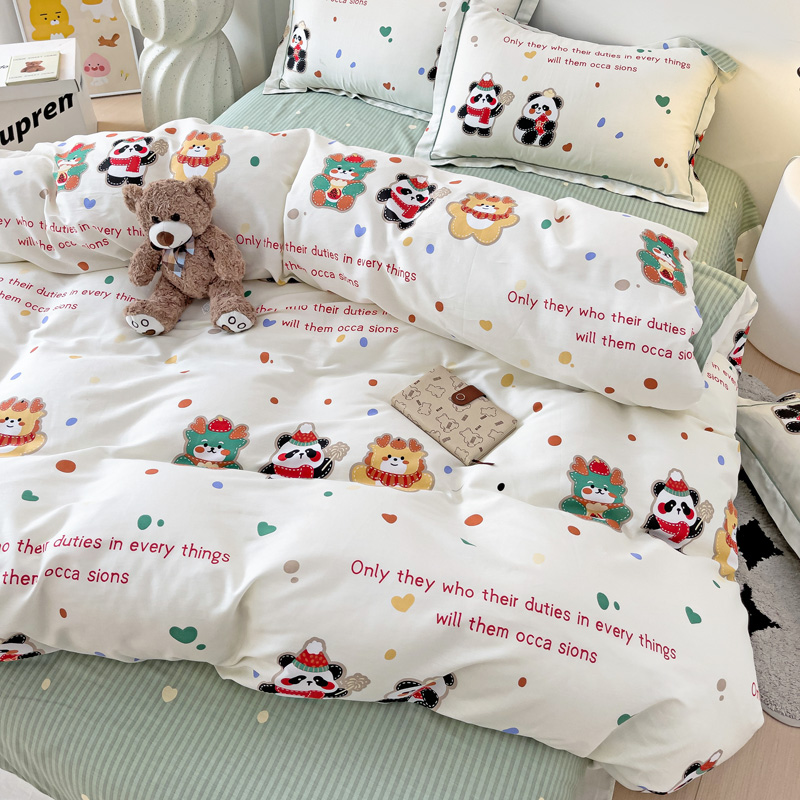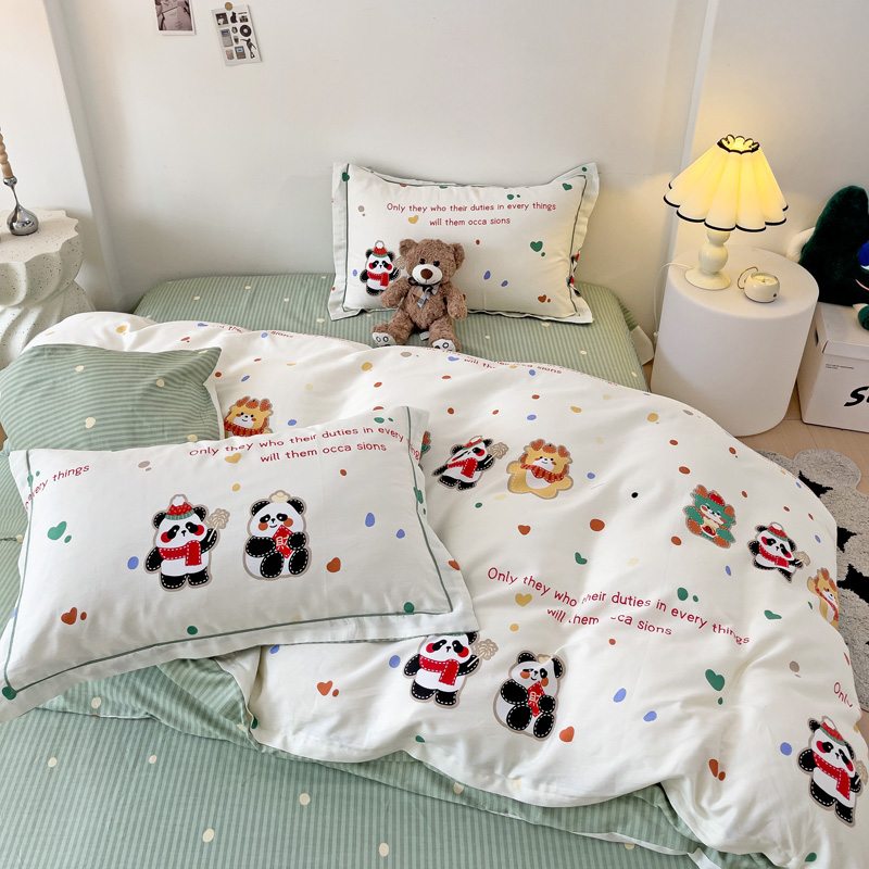 云锦家居 2024新款13070纯棉印花吊边款一字绣四件套 炫彩乐园