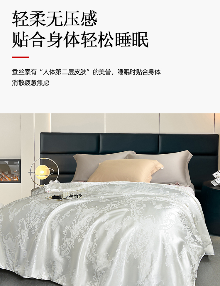 (总)茧月 2024新款提花蚕丝夏被空调被夏凉被,白色
