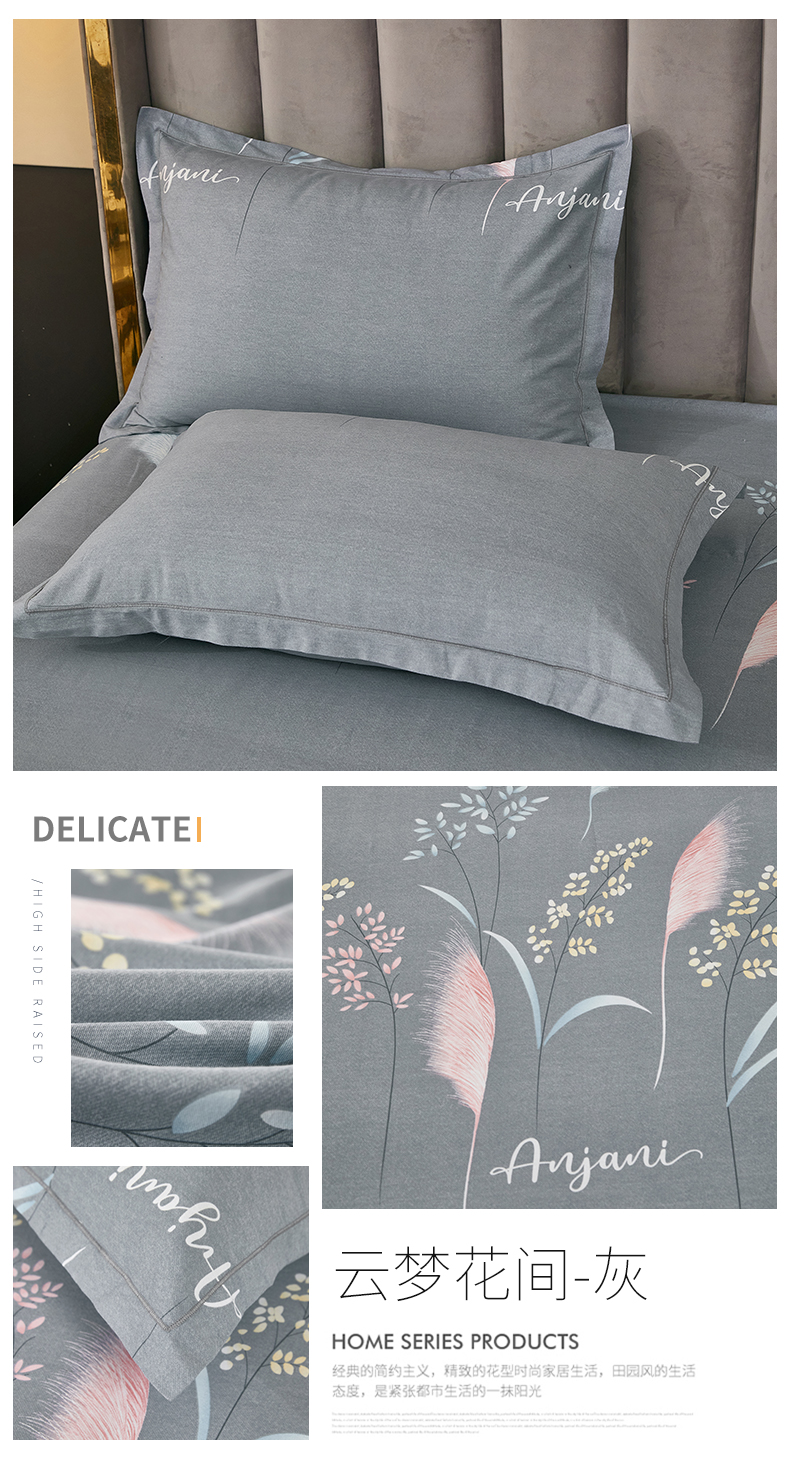 商品名称:尚帛 2024新款新疆棉磨毛印花单品枕套 云梦花间(灰)