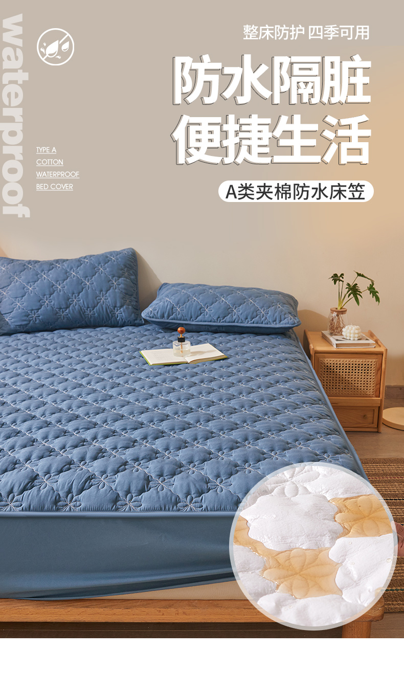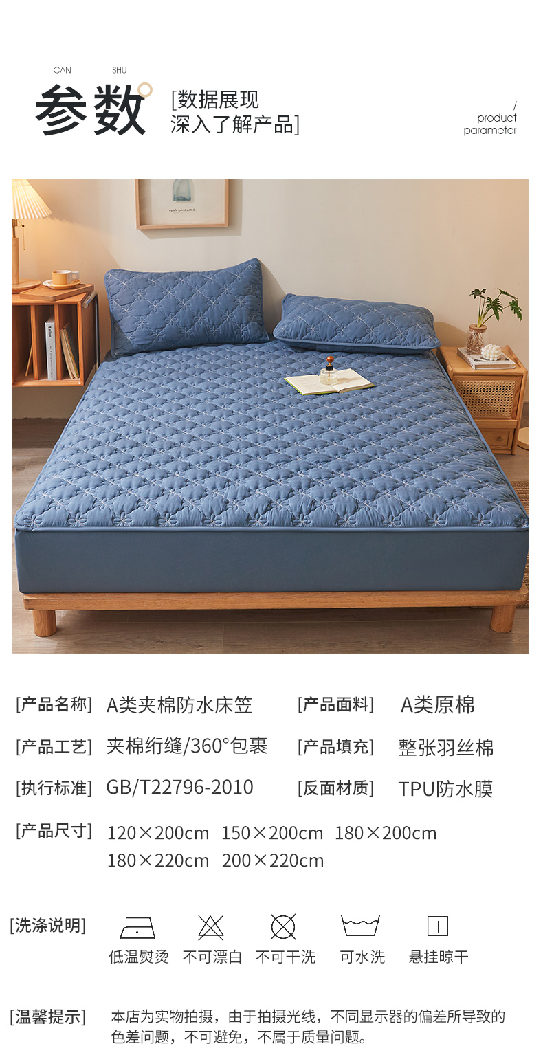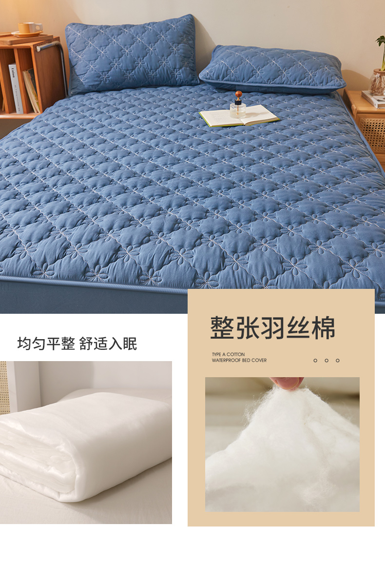 予梦家纺 2024新款(外贸专供)A类原棉夹棉防水床笠 宾利蓝