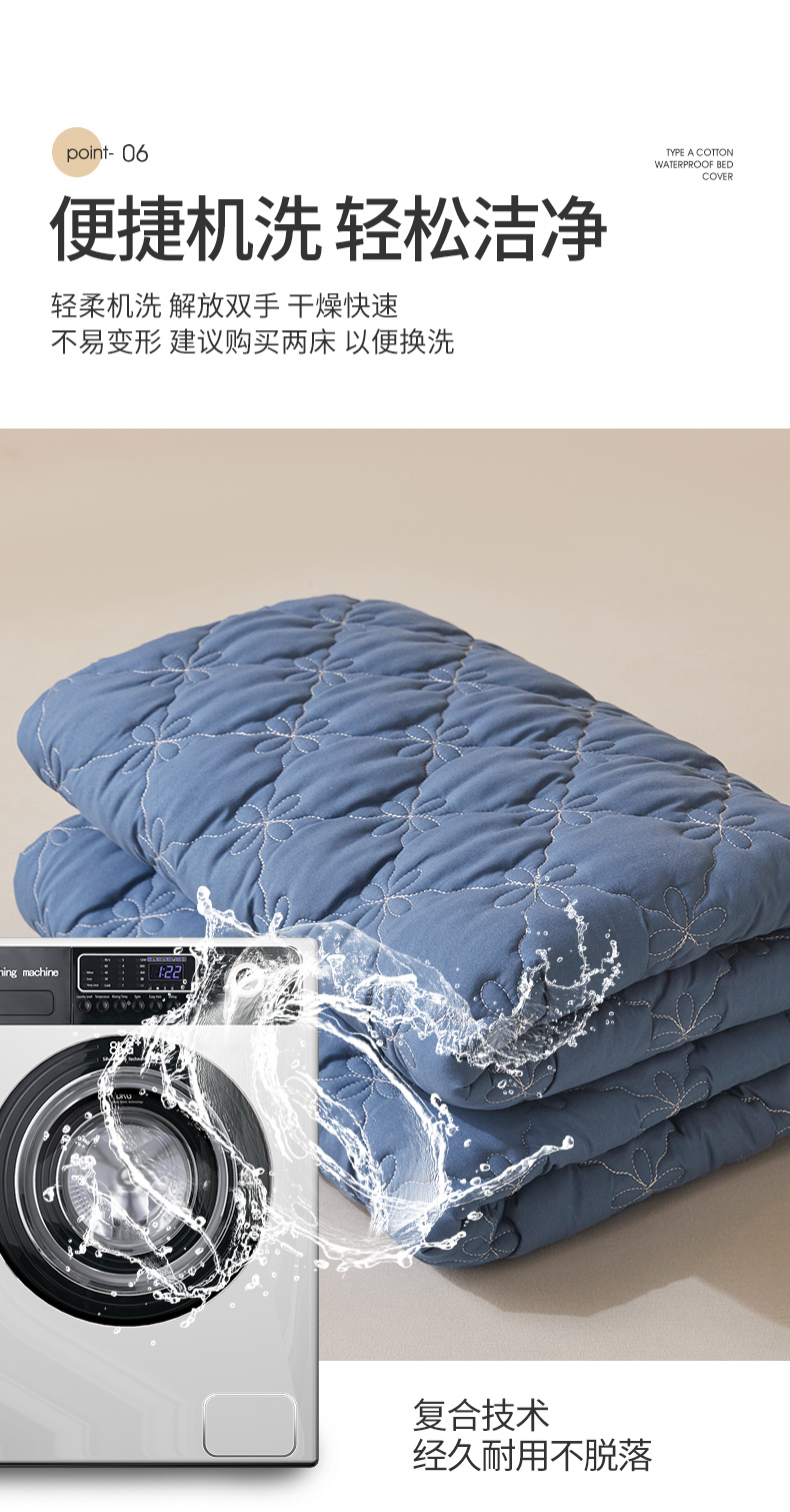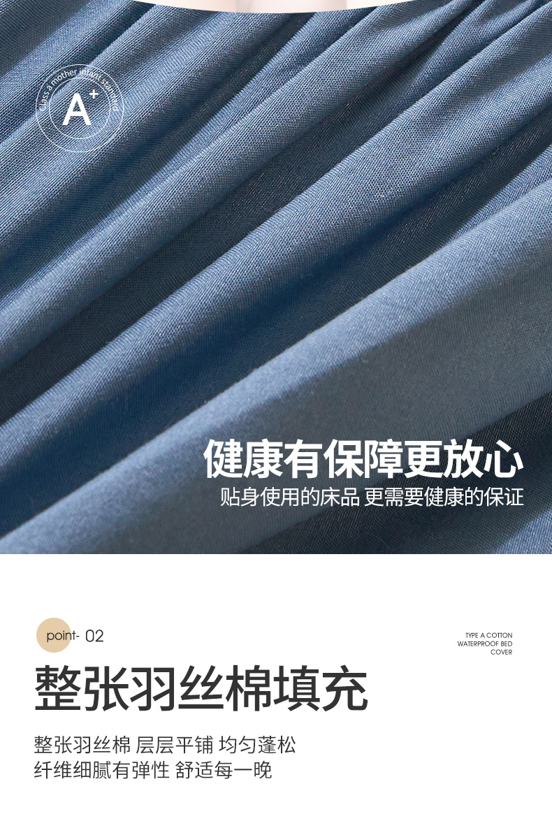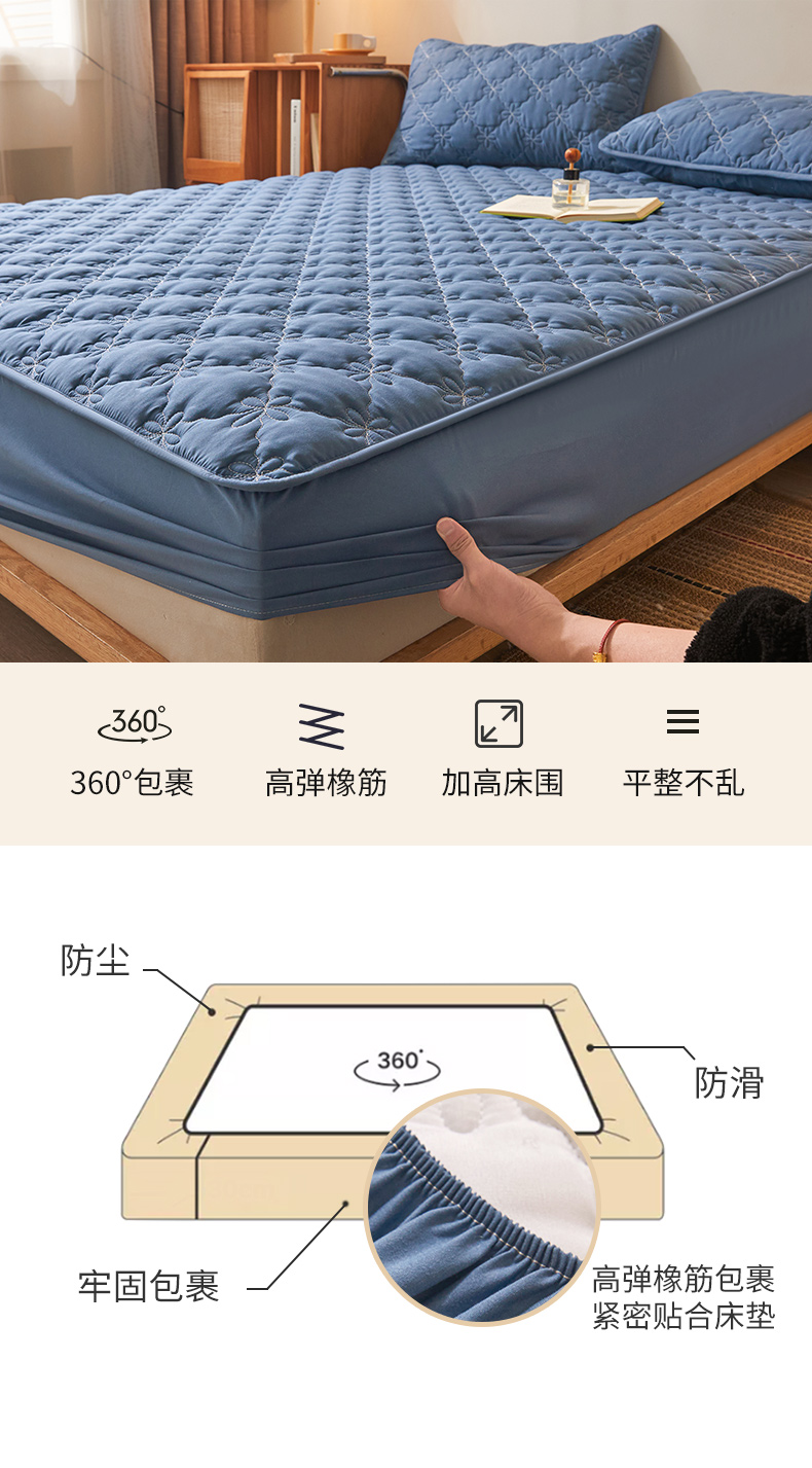 予梦家纺 2024新款(外贸专供)A类原棉夹棉防水床笠 宾利蓝